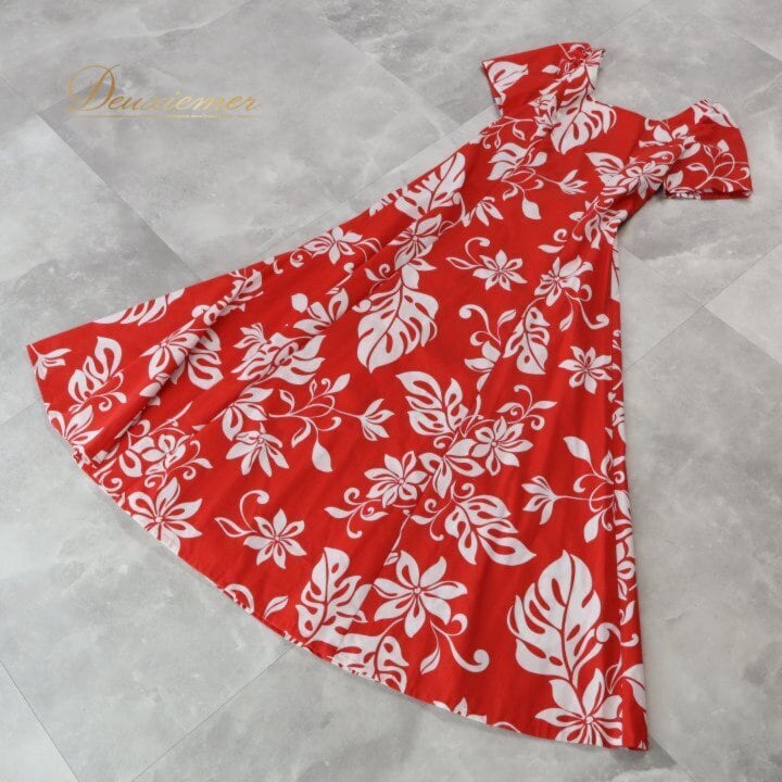 フラダンス 衣装 ワンピース ドレス レッド系 HulaKu 日本製 ハワイアンプリント モンステラ柄 植物柄 半袖 フレアスカート アロハ フラ ダンス レッスン 練習 赤 白 ホワイト系 ハワイアンダンス レディース 華やか 鮮やか かわいい おしゃれ アロハシャツ ハワイ風 大人用 お祭りイベント フラメンコ服 文化体験 旅行 おそろいカップル衣装 薄手 スミレ 赤系 ホワイト系 レッド系 フラダンス衣装 フラワンピ バックスタイル レッドドレス アロハ柄 日本製衣装 成人式 結婚式 ハワイ