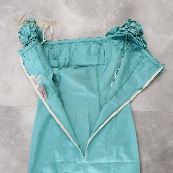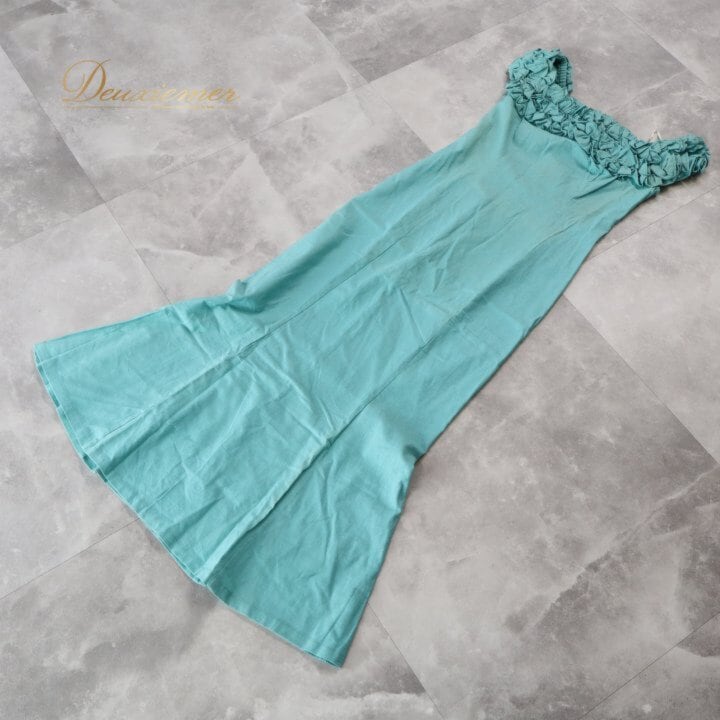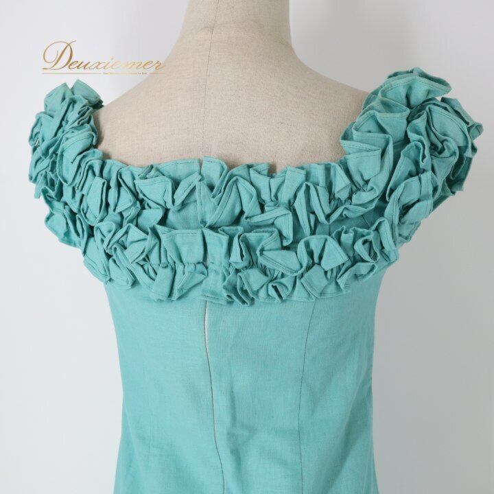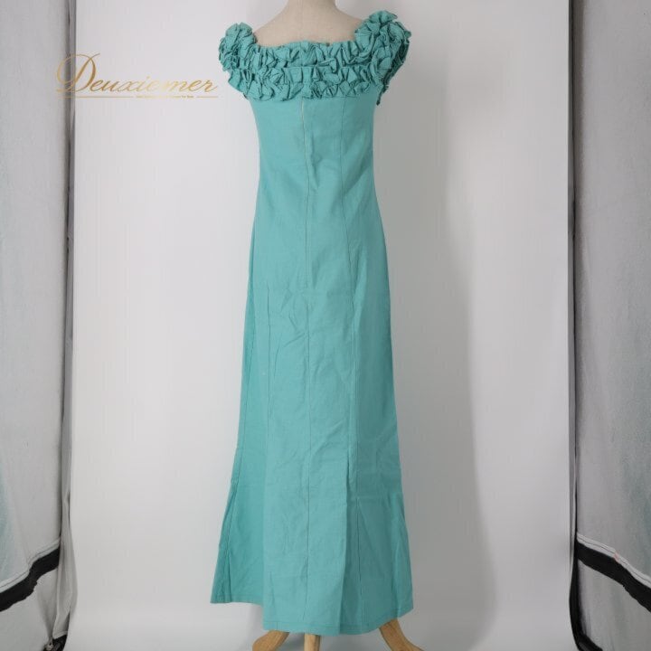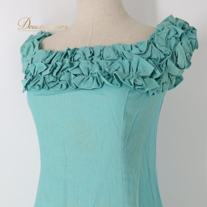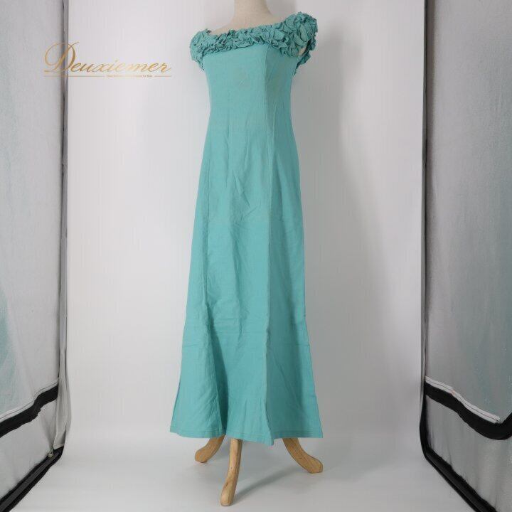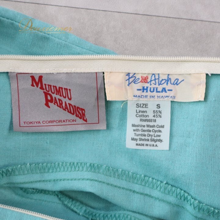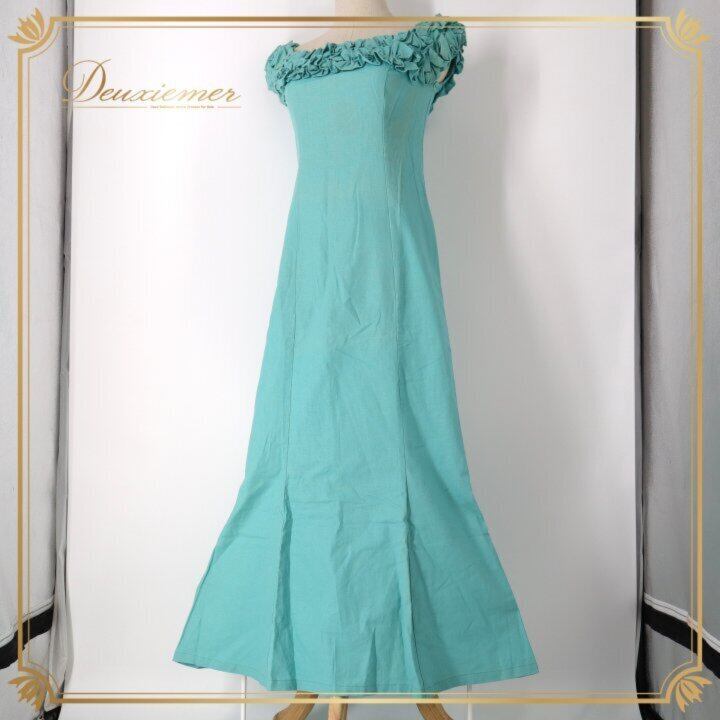 フラダンス 衣装 ワンピース ドレス グリーン系 MUUMUU PARADAISE ハワイ製 ミントグリーン 無地 シンプル フリル ハワイアンダンス レディース ブルー系 さわやか 華やか 鮮やか かわいい おしゃれ 上品 大人っぽい フラ ダンス レッスン 練習 リネン コットン 軽やか 夏服 フェス パーティー コーディネート お出かけ 着まわし ふんわり