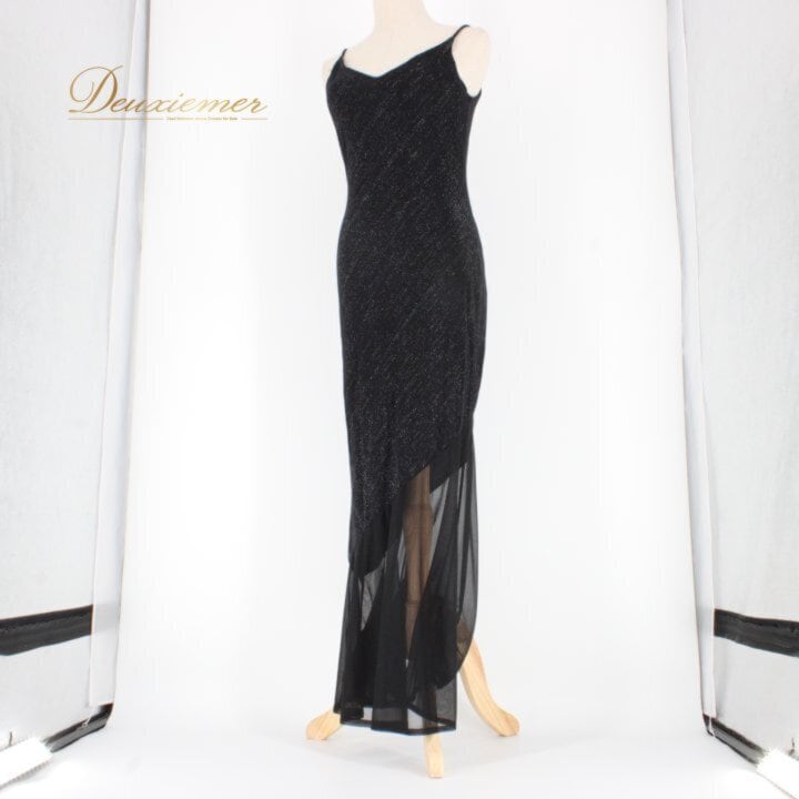 ICHIOKU ダンス衣装 社交ダンス レディース スタンダード ブラック系 ドレス ワンピース 発表会 演奏会 黒 ノースリーブ シンプル カラオケ 伸縮性 気品 クラシック ブラック デザイン 発表会衣装 ドレスアップ スタイル レディースファッション
