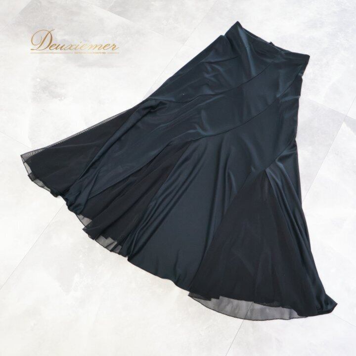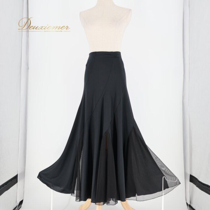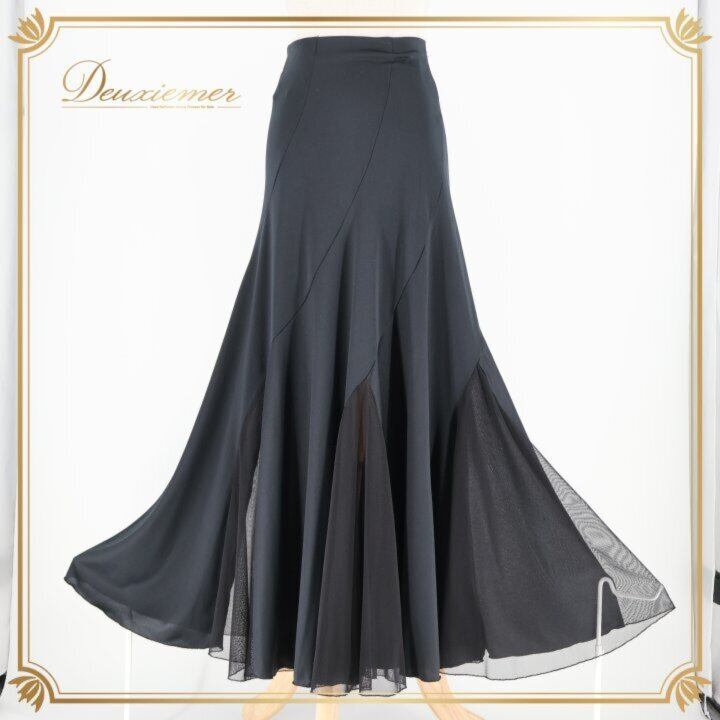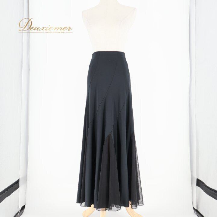 社交ダンス 衣装 スカート ブラック系 白樺ドレス 日本製 無地 シンプル 練習 レッスン 伸縮 ストレッチ 上品 光沢 かわいい メッシュ生地 ダンス衣装 イベント ステージ 薄い オールブラック