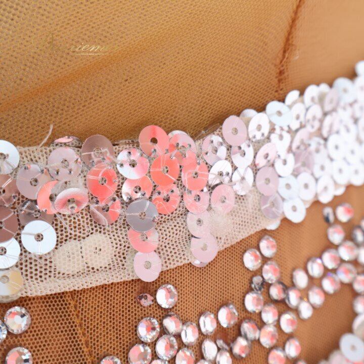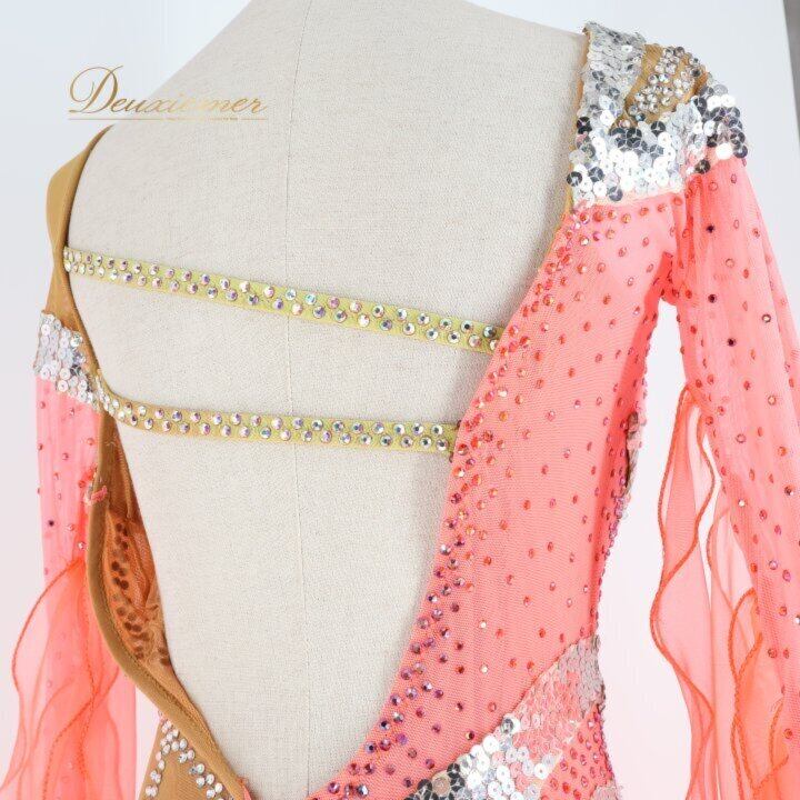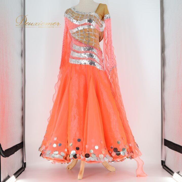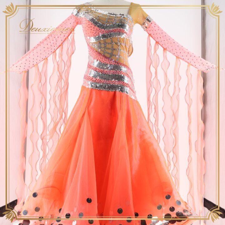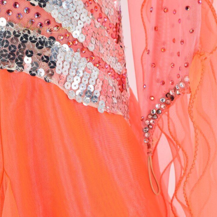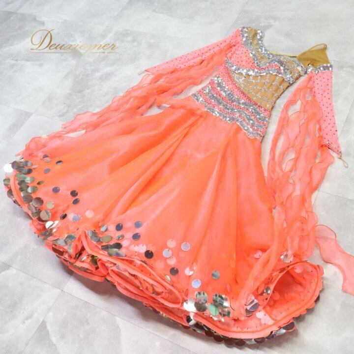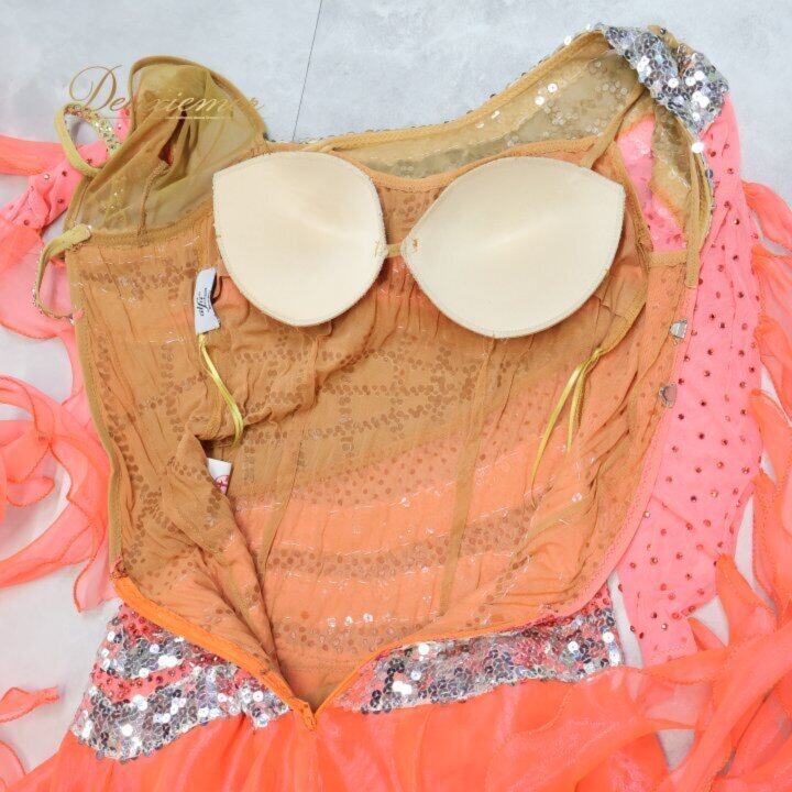 社交ダンス 衣装 シルック silook アルファ alfa スタンダードドレス ワンピース ドレス ピンク系 オレンジ系 フロート レース スパンコール デモ 競技 ダンス パーティ 発表会 豪華 デザイン 大人用 フィットネス ストレッチ ダンスウェア 発表会衣装 おしゃれ きれい 可愛 レディース 競技会用 ステージ衣装