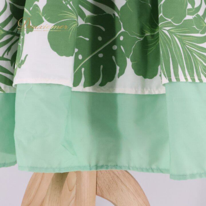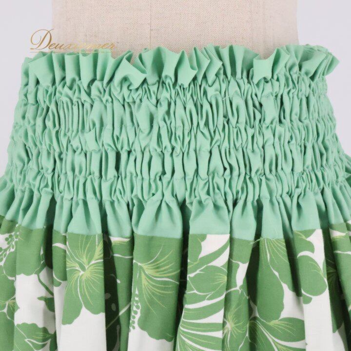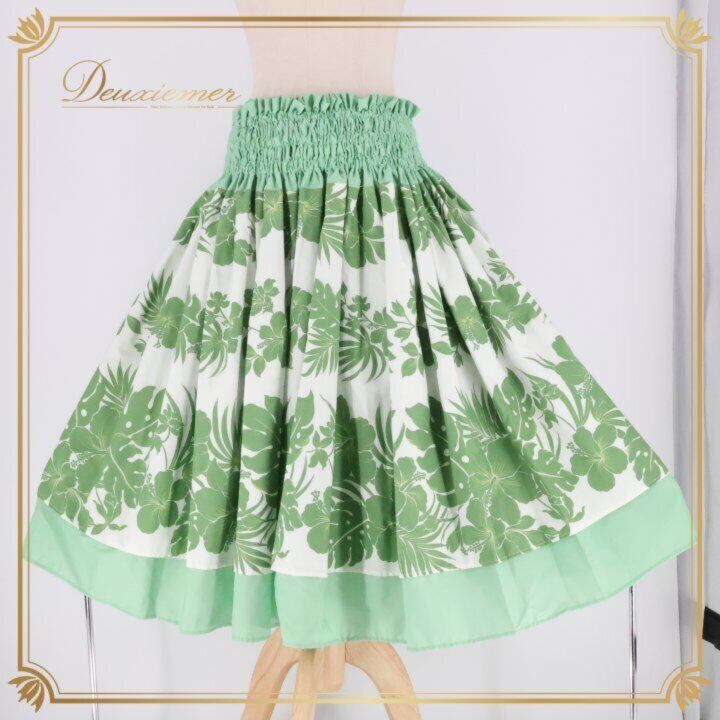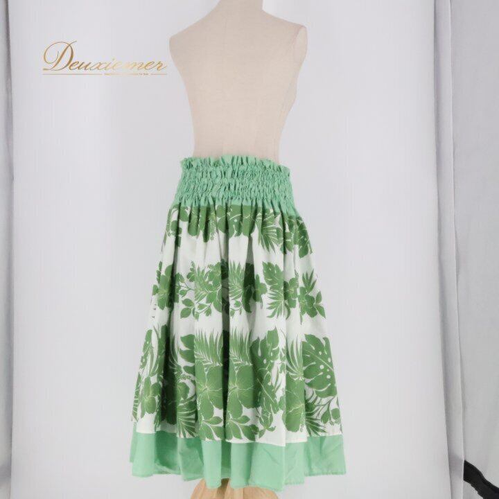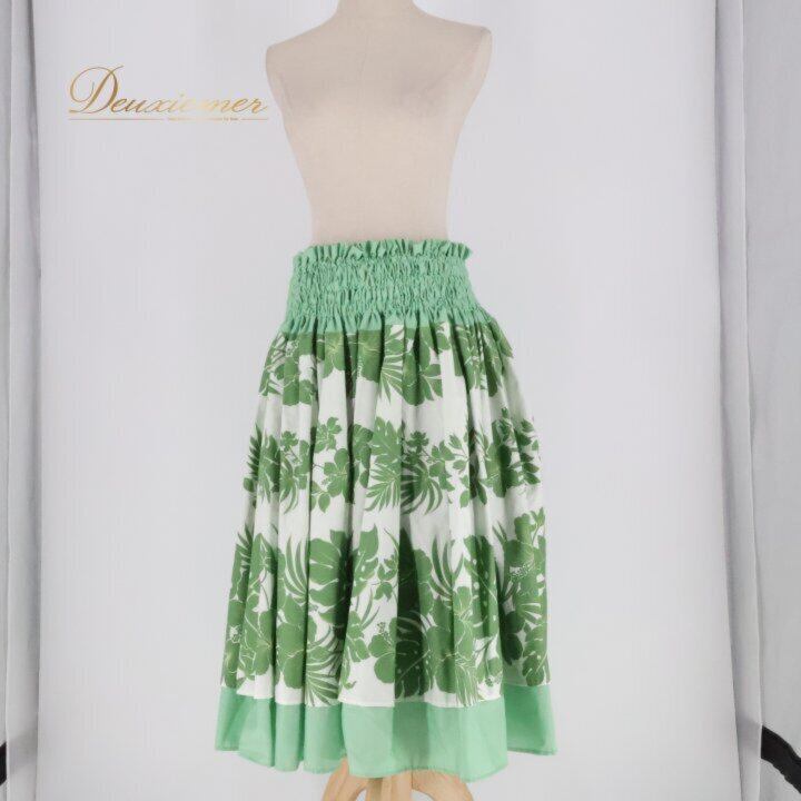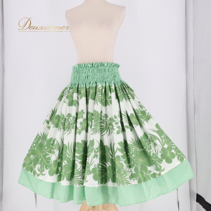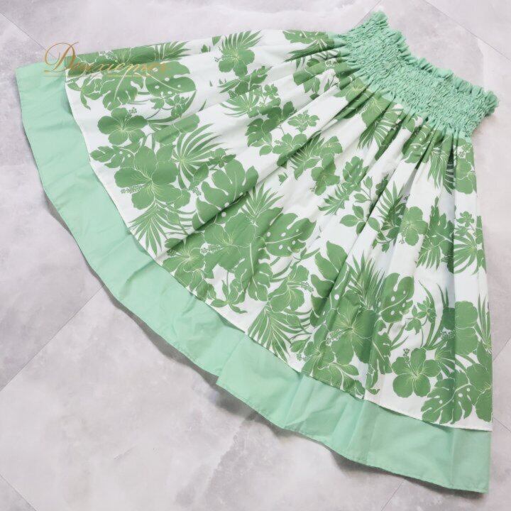 フラダンス パウスカート ROYAL HAWAIIAN CREATION グリーン系 ハワイ製 ダブル ハイビスカス柄 モンステラ柄 かわいい 爽やか 華やか 鮮やか 明るい 緑 白 ダンス衣装 レディース ホワイト系 ハワイアン アロハ フラ レッスン 練習