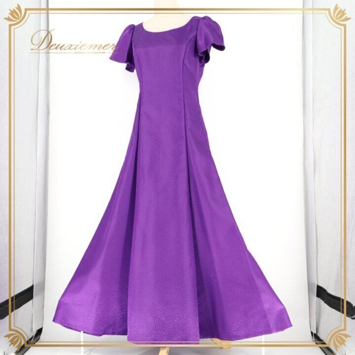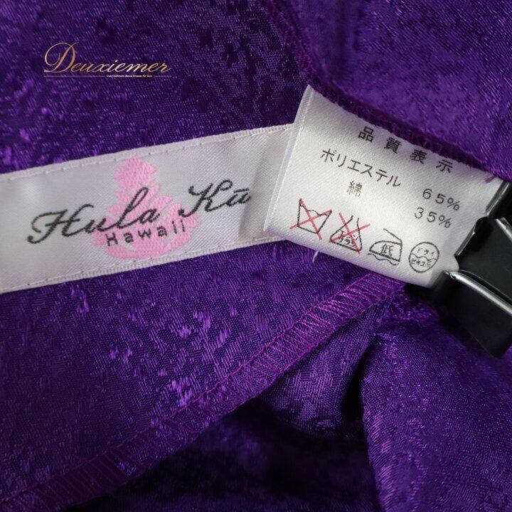 フラダンス 衣装 ワンピース ドレス パープル系 HulaKu 日本製 シンプル 紫 光沢 半袖 フレアスカート ハワイアンダンス レディース 華やか 鮮やか おしゃれ 上品 大人っぽい ハワイアン アロハ フラ ダンス レッスン 練習 フレア