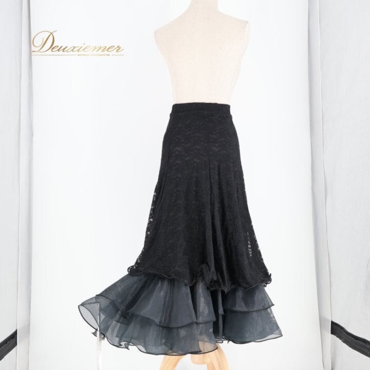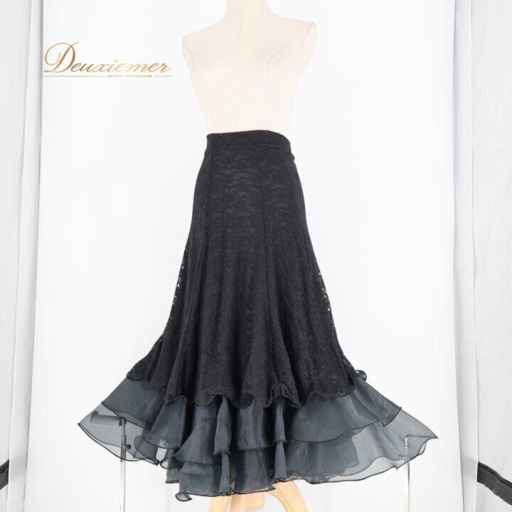 社交ダンス 衣装 スカート ブラック系 タカダンス TAKA DANCE 黒 花柄 レース フリル 練習 レッスン 伸縮 ストレッチ 華やか ボリューム ダンス衣装 イベント ステージ パーティー かわいい