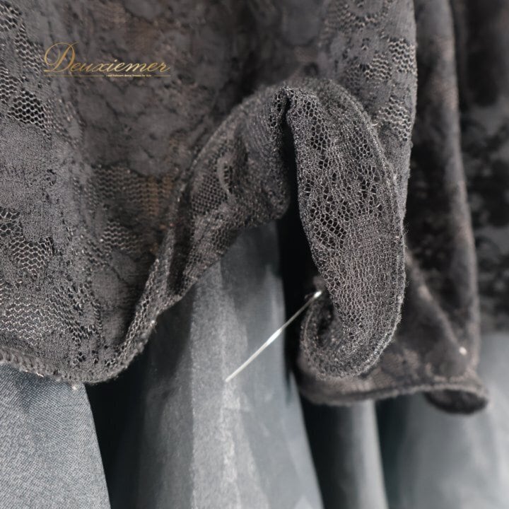 レース生地全体的に毛羽立ち有り。