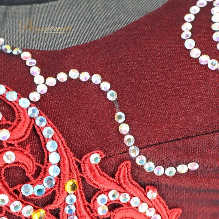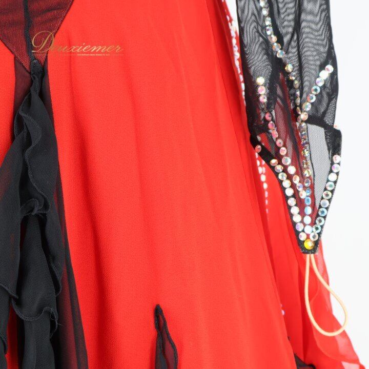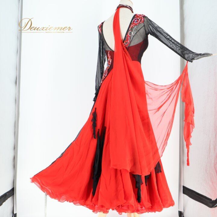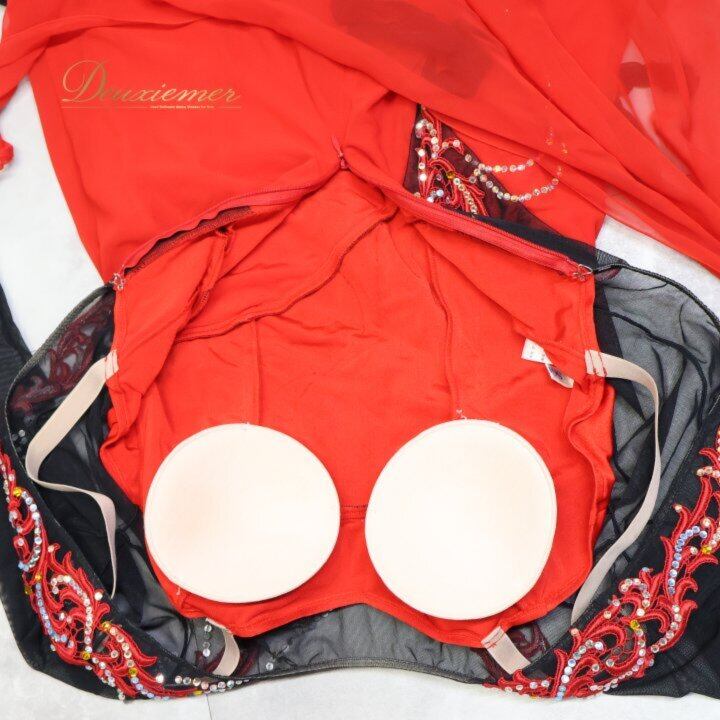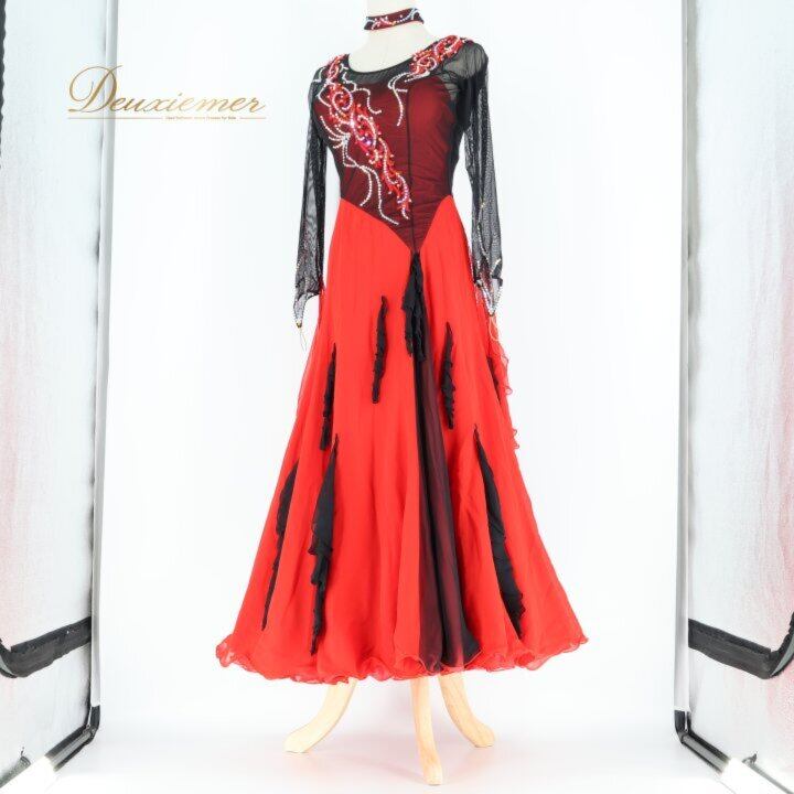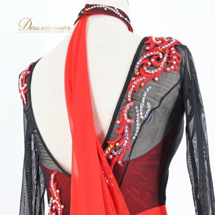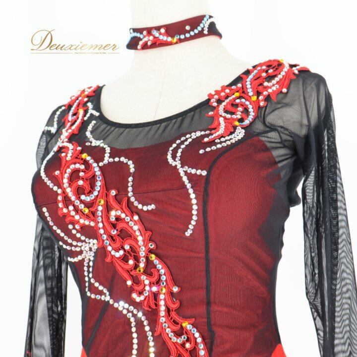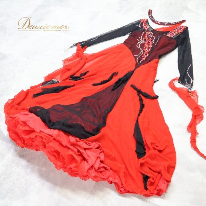 社交ダンス 衣装 スタンダードドレス ワンピース ドレス ブラック系 レッド系 ソレリ SORELI 日本製 赤 黒 フロート レース デモ 競技 パーティ 発表会 ゴージャス スカート デザイン 取り外し可能 衣装用 胸パッド 良質 ポリエステル ダンスパフォーマンス 発表 競技用 レディース Mサイズ 高品質 発表会衣装 趣味 ダンスレッスン ブラック系 レッド系
