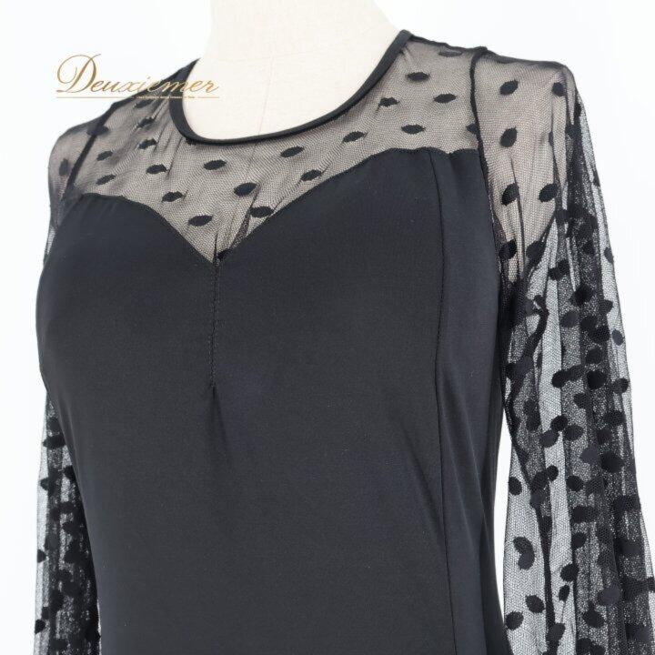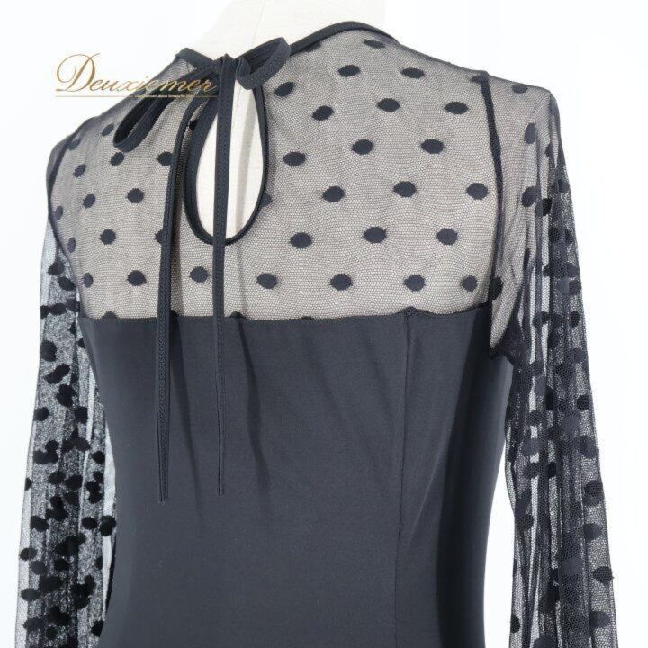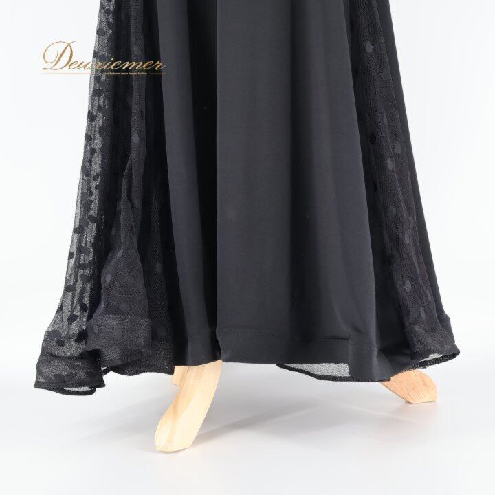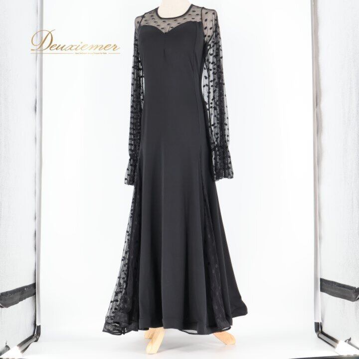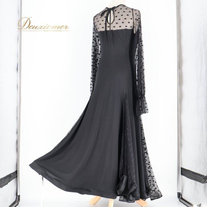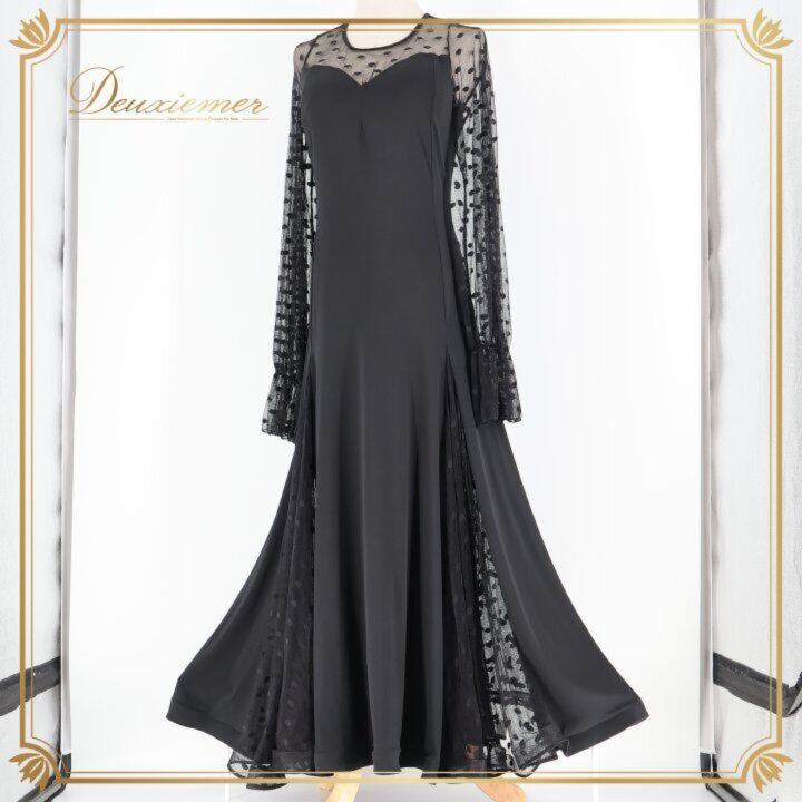 社交ダンス 衣装 ワンピース ドレス ブラック系 MEIYU 黒 レース 水玉 ドット パーティ 発表会 ダンス 綺麗 シック エレガント フォーマル 大人 レディース エレガントスタイル ダンスウェア パーティードレス おしゃれ