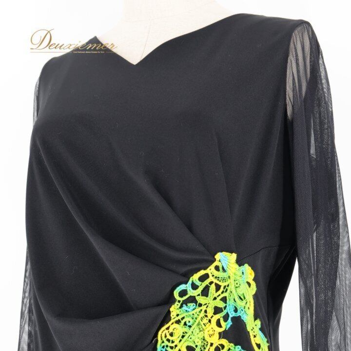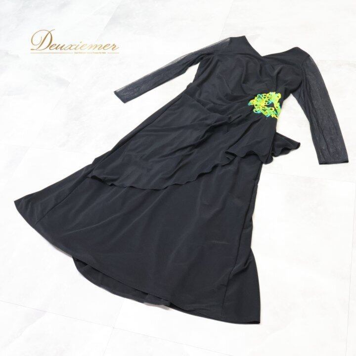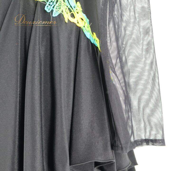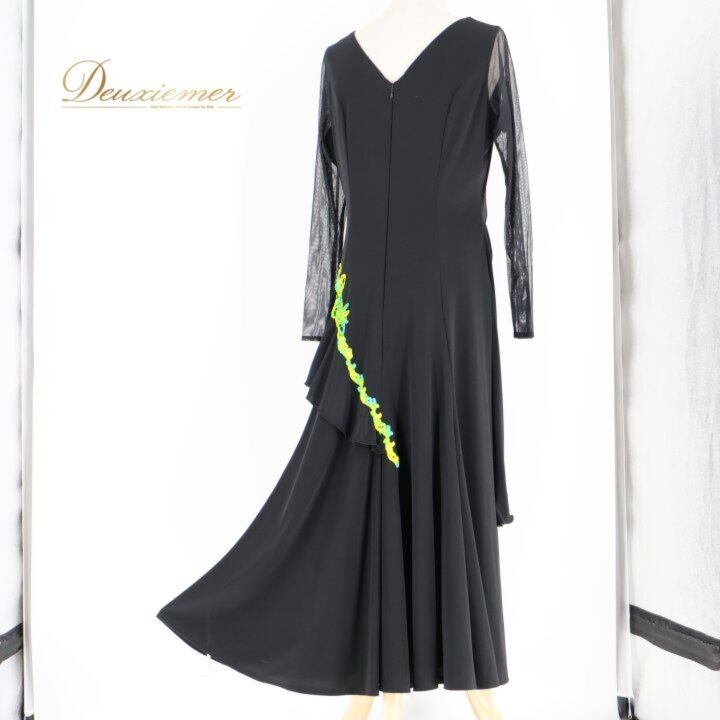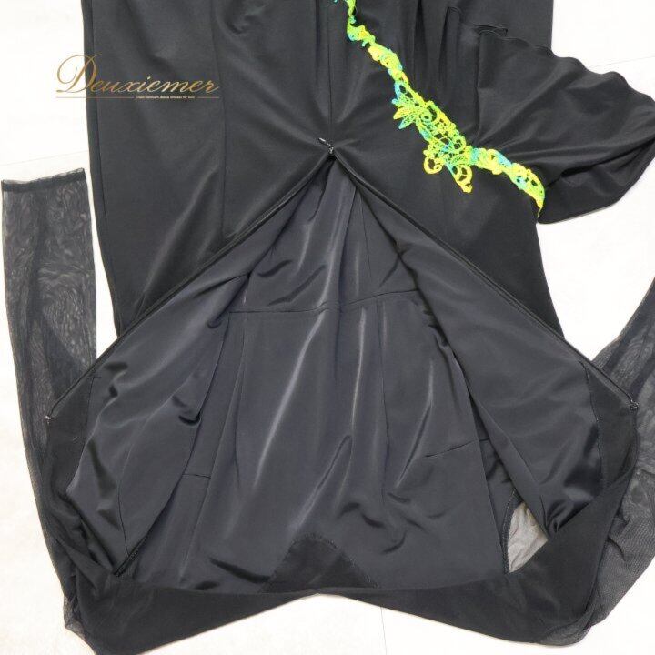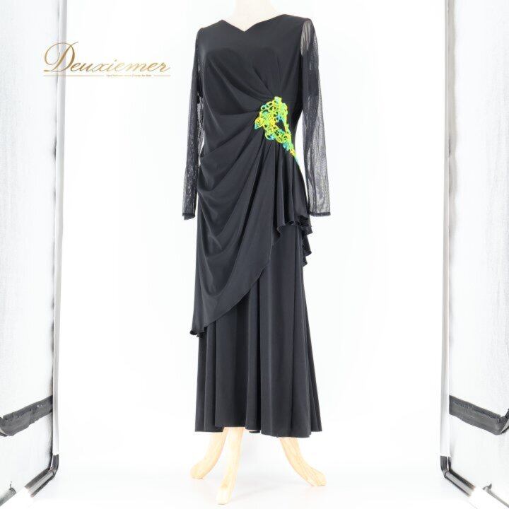 社交ダンス 衣装 ワンピース ドレス ブラック系 グリーン系 セキネ SEKINE 日本製 黒 緑 黄緑 黄色 ダンス パーティ 発表会 レース 伸縮 きれい フォーマルエレガント ステージ衣装 発表会衣装