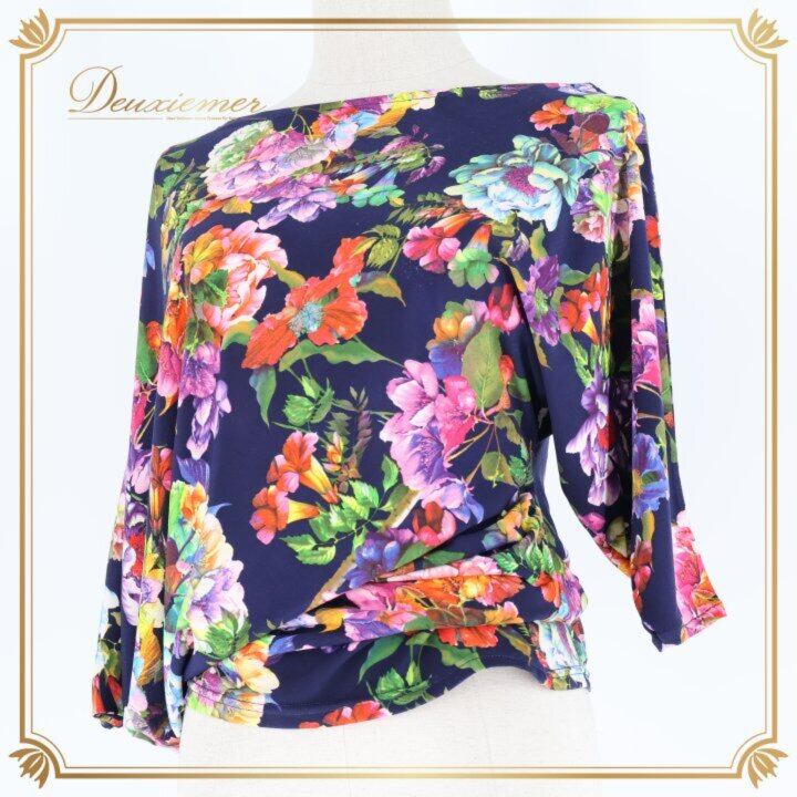 社交ダンス 衣装 ジャンティ gentil トップス ブラウス レッド系 ピンク系 パープル系 ネイビー系 グリーン系 イエロー系 オレンジ系 紺 ピンク オレンジ 伸縮 ストレッチ 特徴的 レッスン 練習着 ダンス 花柄 おしゃれ 柔らかい レディース