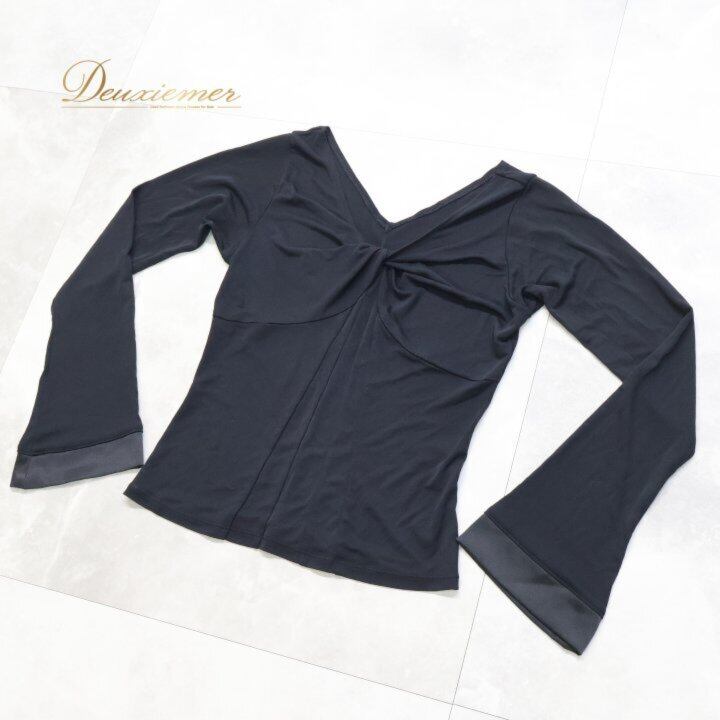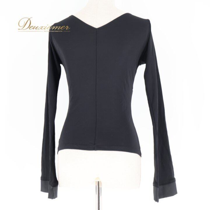 社交ダンス 衣装 チャコット Chacott ROYAL DANCE 日本製 トップス ブラウス カットソー ブラック系 黒 無地 長袖 伸縮 レッスン 練習着 ダンス パーティ 発表会 ブラック系