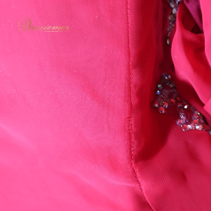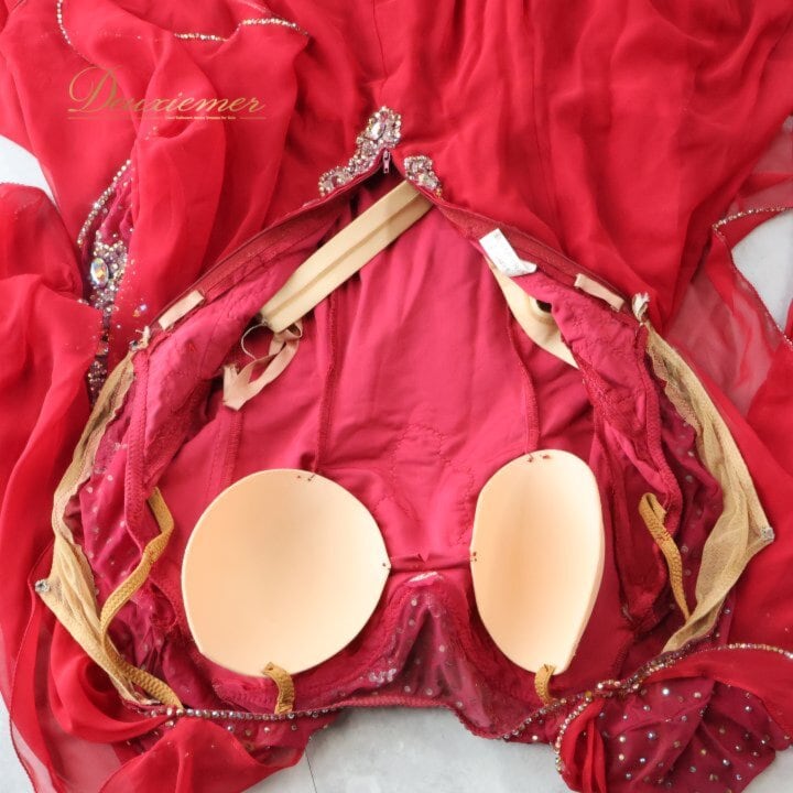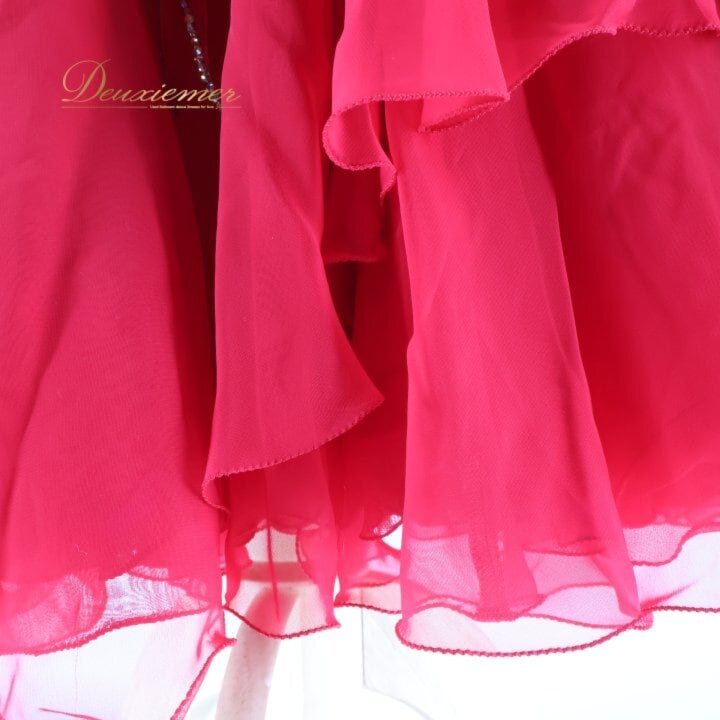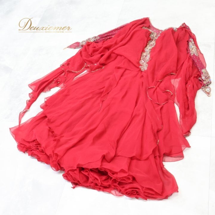 #ドレス #赤ドレス #深紅 #フロートレース #ゴージャス #スカート3枚重ね #重ねスカート #レディースファッション #ダンス衣装 #ステージ衣装 #発表会 #バレエ #チア #レオタード風 #背面ファスナー #伸縮性 #胸パッド付き #上半身伸縮 #サイズL #ENUTSU