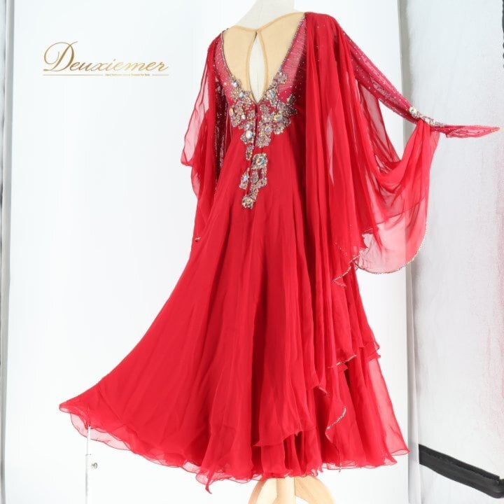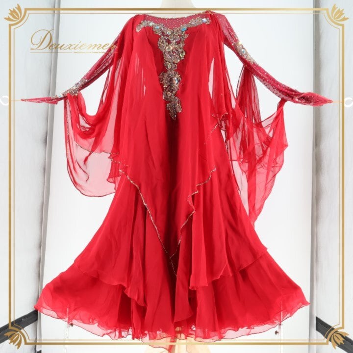 社交ダンス 衣装 スタンダードドレス ワンピース ドレス レッド系 シルバー系 赤 フロート レース デモ 競技 ダンス パーティ 発表会 落ち感 高級感 上品 社交ダンスワンピース レディース 社交ダンスドレス デモンストレーション ビジュー ラインストーン フロートレース ワンピースドレス ラグジュアリー 大人可愛い 華やか フェミニン 演技衣装 舞台衣装 発表会衣装