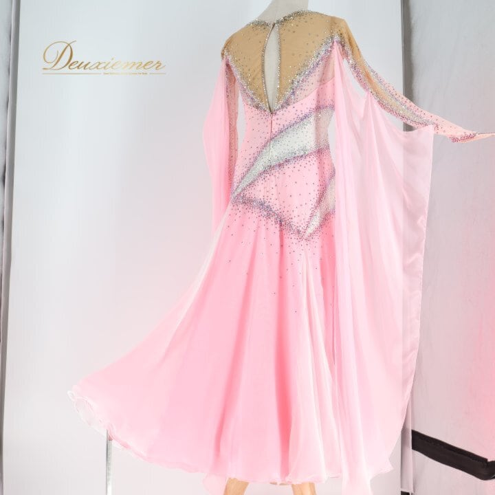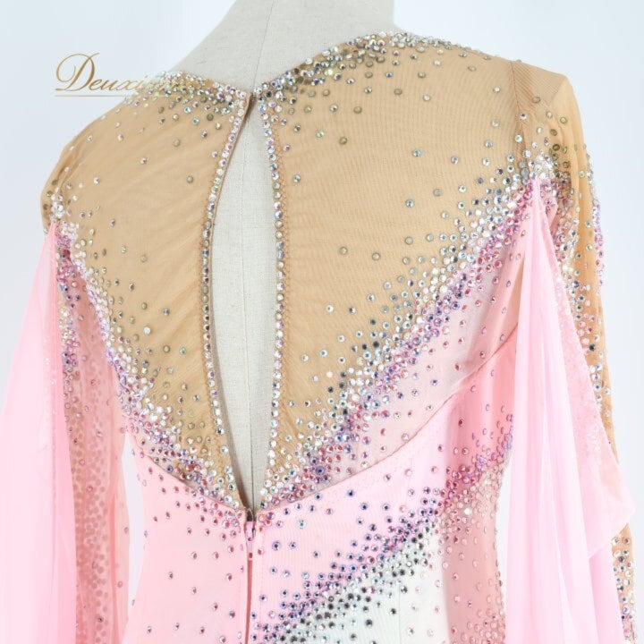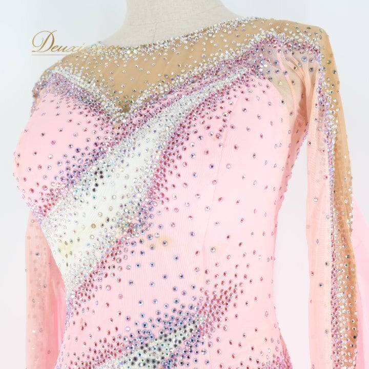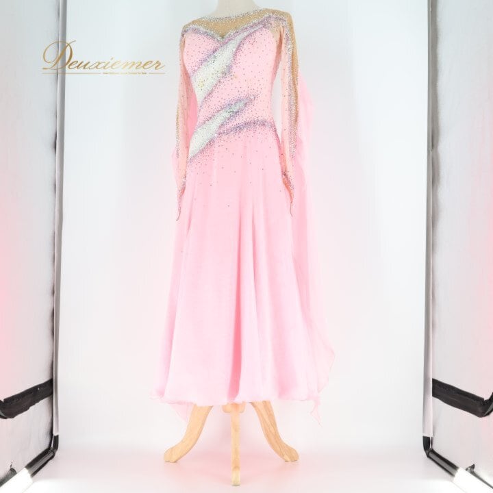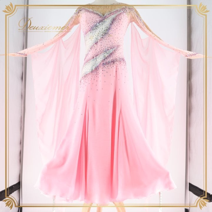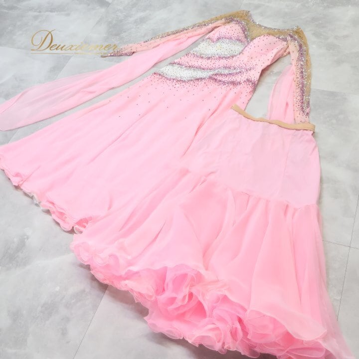 社交ダンス 衣装 スタンダードドレス ワンピース ドレス ホワイト系 ピンク系 ピンク 白 フロート レース デモ 競技 ダンス パーティ 発表会 ピンクドレス 社交ダンスドレス スタンダード ワンピースドレス デモンストレーション衣装 競技用ドレス パーティー衣装 発表会ドレス キラキラ ビジュー ペチコート 女性用ダンス衣装 エレガント 舞台衣装