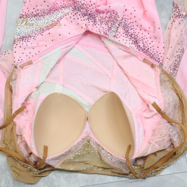 #ピンク #衣装 #ダンス衣装 #ステージ衣装 #発表会 #バレエ #クラシックバレエ #新体操 #レオタードなし #ペチコート付き #胸パッド付き #背面ファスナー #伸縮性あり #上半身伸縮 #ウエストフィット #サイズL #総丈122 #かわいい #ガーリー #ENUTSU