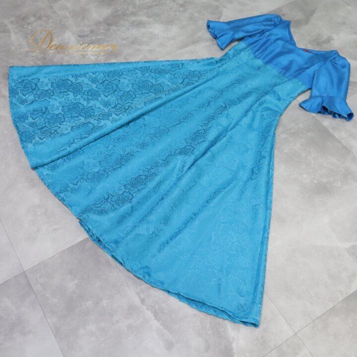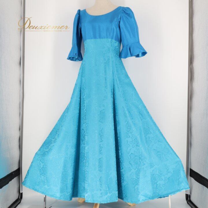 フラダンス 衣装 ワンピース ドレス ブルー系 マーメイドライン エムエムジェイ 日本製 MermaidLine MMJ バラ柄 ロケラニ柄 半袖 光沢 高級感 華やか 鮮やか かわいい おしゃれ 上品 さわやか ダンス衣装 ハワイアンダンス レディース フラ ダンス レッスン 練習 フラワンピース ロケラニ柄ワンピース バラ柄ドレス ブルーワンピース サックスブルー系 水色系 青系 マーメイドドレス マキシ丈 ロング丈 半袖フラ衣装 フレアスカート 光沢生地 上品デザイン きれいめ フォーマル