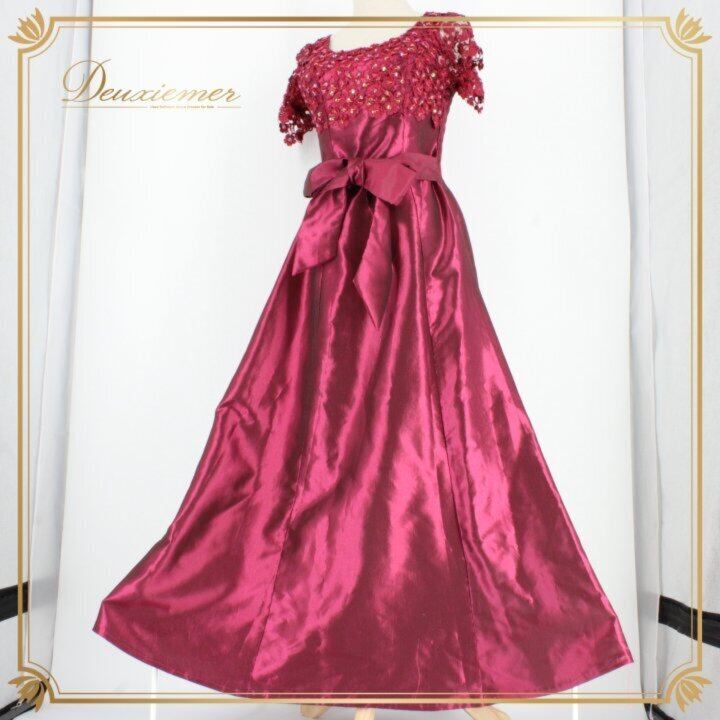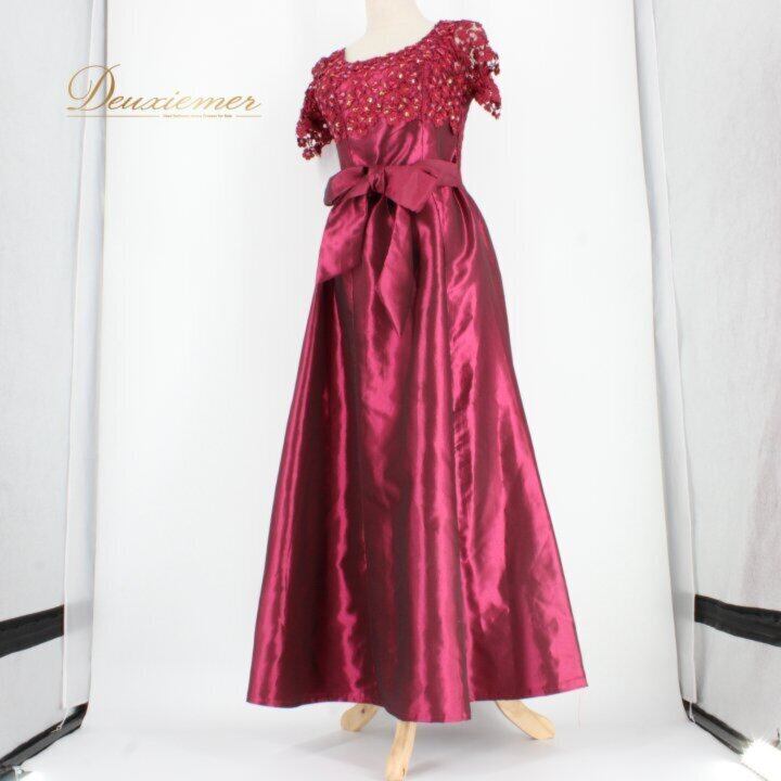 パーティドレス 社交ダンス レディース スタンダード レッド系 ドレス カラードレス 発表会 演奏会 カラオケ 二次会 ピアノ 赤 花柄 レース パープル系 ワインレッド系 光沢 サテン風 光沢感 フェミニン 袖なし ノースリーブ フレアスカート ミモレ丈 ロング丈 大人可愛い 華やか 上品 エレガント レース花柄 刺繍風レース ウエストリボン 蝶結び ベルト付き きれいめ 結婚式 コンサート 舞台衣装 衣装用 フォーマル レディース 伸縮性 シャーリング 体型カバー カラオケ衣装 発表会ドレス