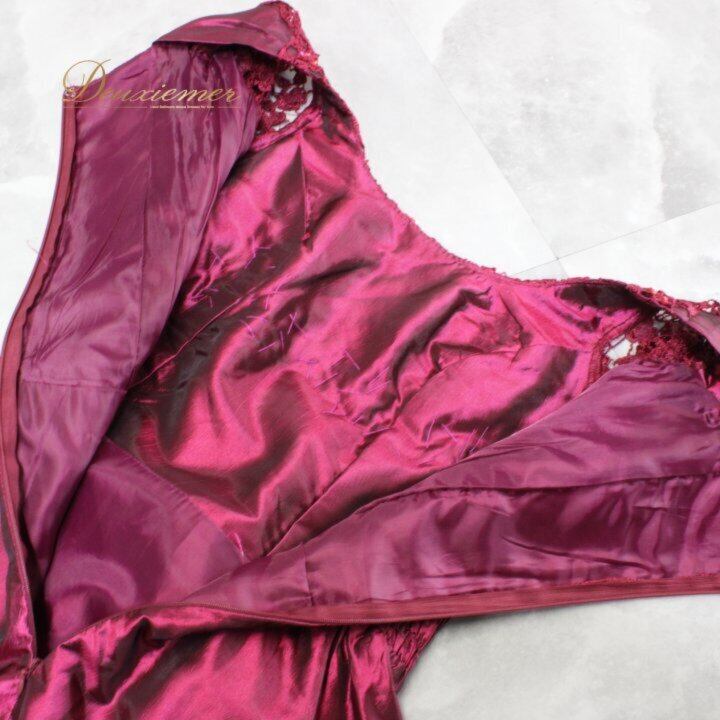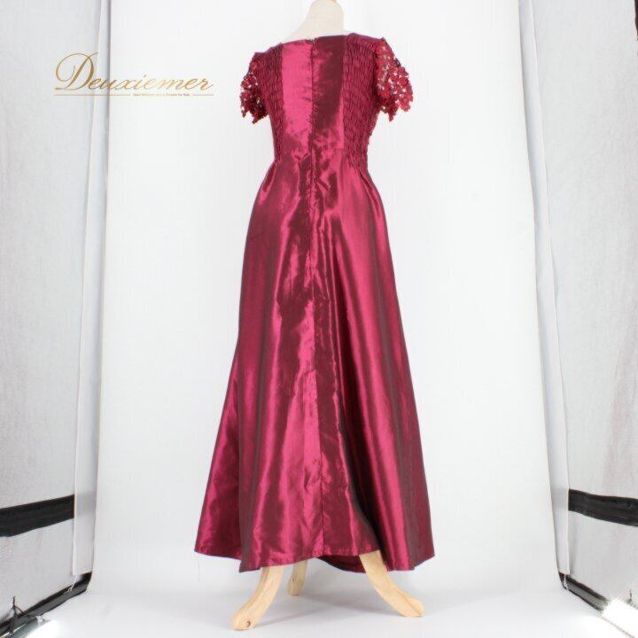 #ワインレッド #紫がかったワインレッド #花柄レース #レースワンピース #フェミニン #エレガント #光沢感 #滑らかな触り心地 #ファスナー #シャーリング #伸縮性あり #ウエストシェイプ #上品コーデ #きれいめコーデ #大人可愛い #結婚式コーデ #パーティードレス #通勤スタイル #レディースファッション #ENUTSU