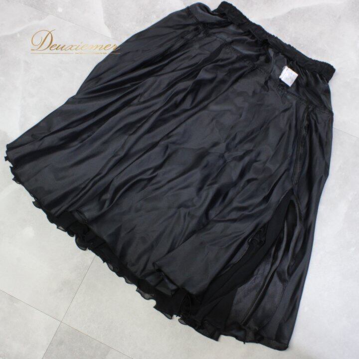 #Fantasy #ファンタジー #日本製 #ENUTSU #モノトーン #ブラック #黒 #ウエストゴム #伸縮性 #ストレッチ #レディース #ボトムス #スカート #シンプル #エレガント #きれいめ #普段使い #オフィスカジュアル #ポリエステル #シルエット #ブラックコーデ