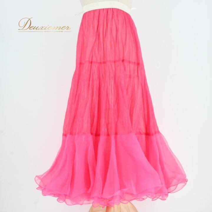 社交ダンス 衣装 スタンダード スカート パニエ ペチコート レッスンウェア レディース ピンク系 スカートU:NA ユーナ 無地 差し色 シンプル フリル パニエ用 スカート補助 重ね着 ふわふわ フリルスカート チュール風 ポリ素材 ビビッドピンク ダンスレッスン 衣装小物 レイヤード スカート丈80cm前後 ダンス衣装 ピンク差し色 フェミニン かわいい 華やか シンプルコーデ レディーズ Mサイズ