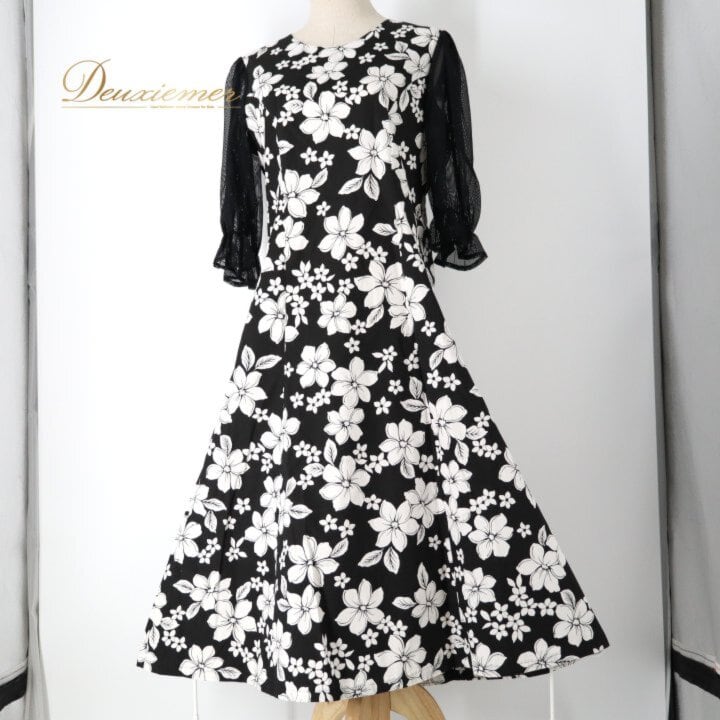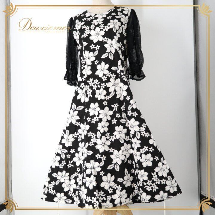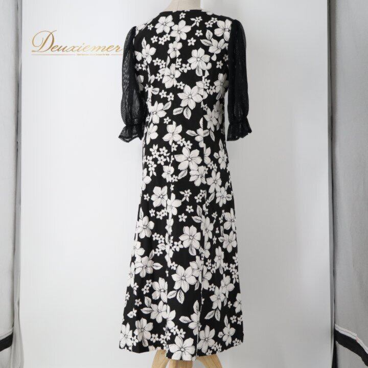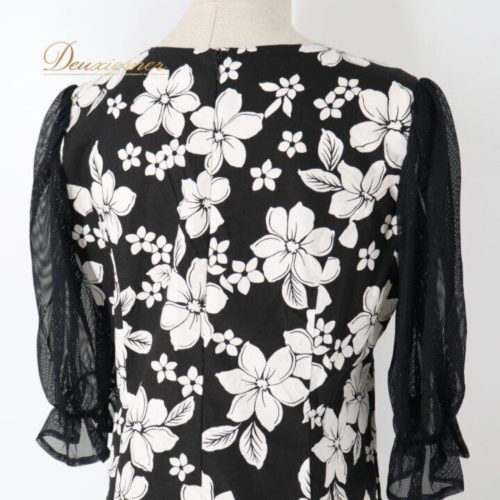 #チュールドレス #プルメリア柄 #ブラックコーデ #ホワイトコーデ #フラワープリント #フェミニン #ガーリー #きれいめ女子 #結婚式コーデ #二次会コーデ #夏コーデ #リゾート風 #ハワイアン #トロピカル #背面ファスナー #ノースリーブ #透け感 #ワンピース #大人可愛い #ENUTSU