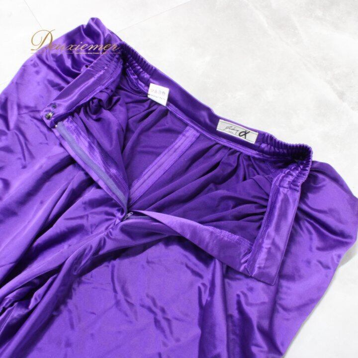 #Fashionα #ファッションアルファ #艶やか #パープル #光沢感 #サテン調 #滑らか #ファスナー仕様 #若干伸縮性 #ストレート風 #ワイドシルエット #スタイリッシュ #きれいめ #舞台映え #ステージコーデ #大人カジュアル #ポリエステル #サイズL #ENUTSU