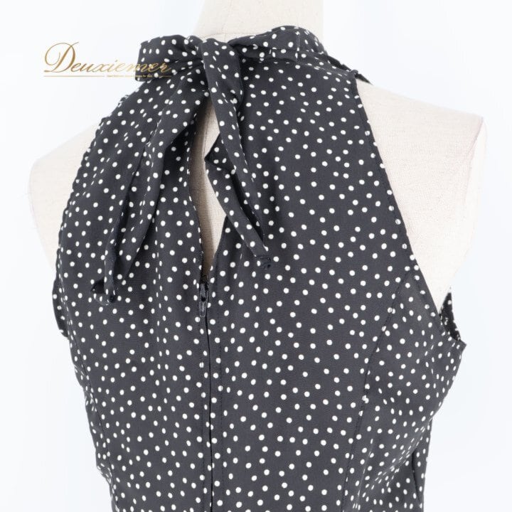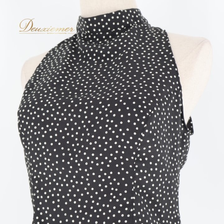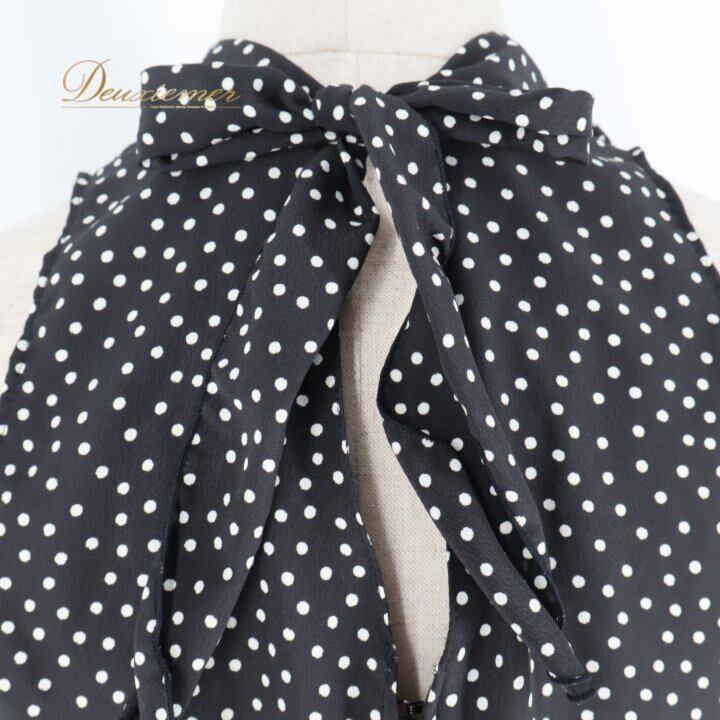 #IBERIA #イベリア #日本製 #水玉 #ドット #ブラック #ホワイト #黒白 #ワンピース #ドレス #背面ファスナー #ノーストレッチ #伸縮性なし #薄手 #軽い #ポリエステル100 #Lサイズ #レディース #きれいめ #カジュアル #ENUTSU