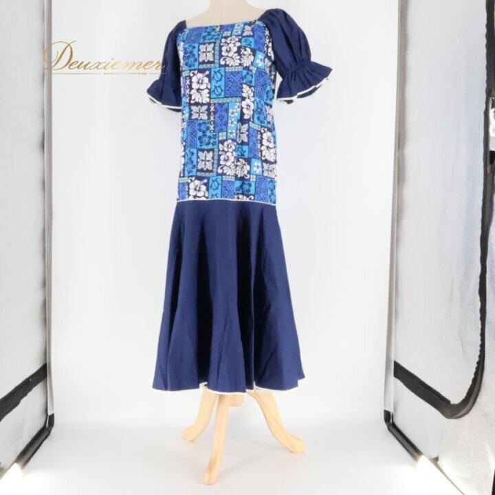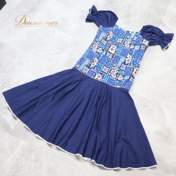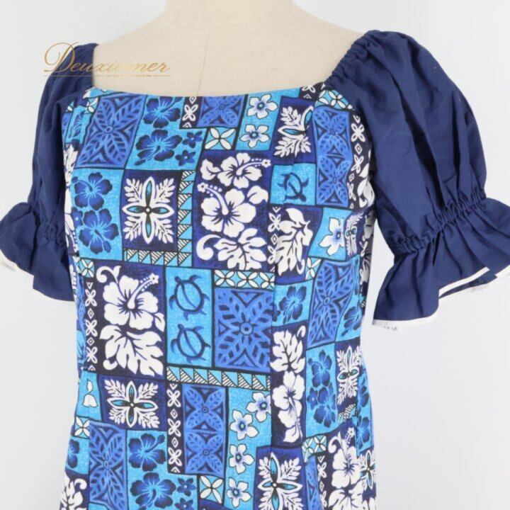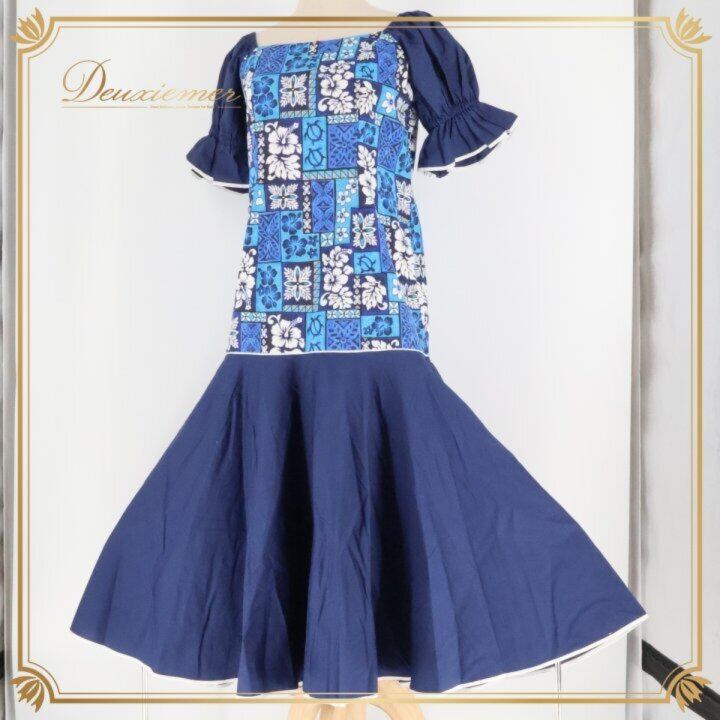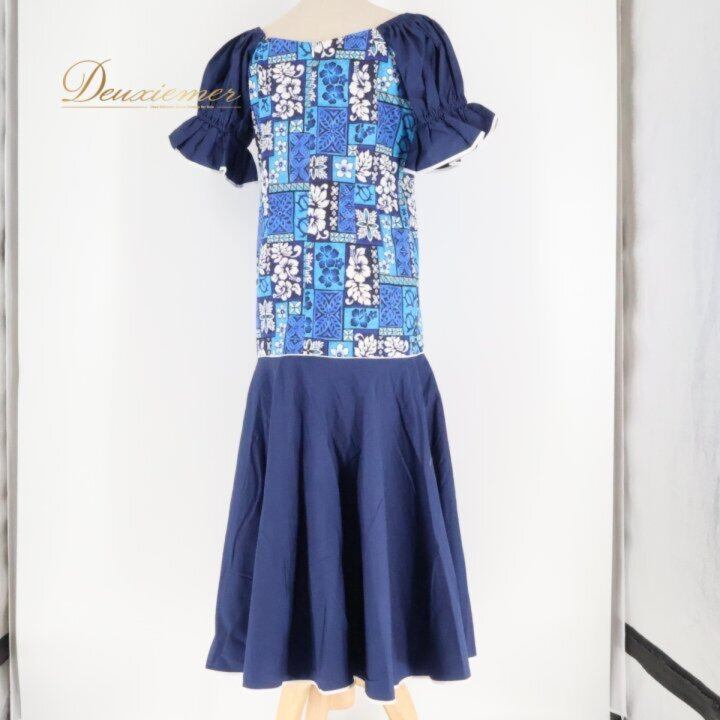 フラダンス 衣装 ワンピース ドレス ネイビー系 ハイビスカス柄 ホヌ柄 カヒコ柄 かわいい 華やか 鮮やか 明るい 大人っぽい 紺 白 ダンス衣装 ハワイアンダンス レディース ハワイアン アロハ ハワイアンプリント フラ ダンス レッスン 練習