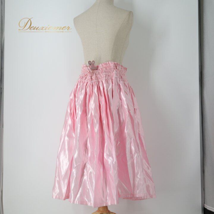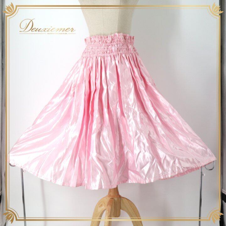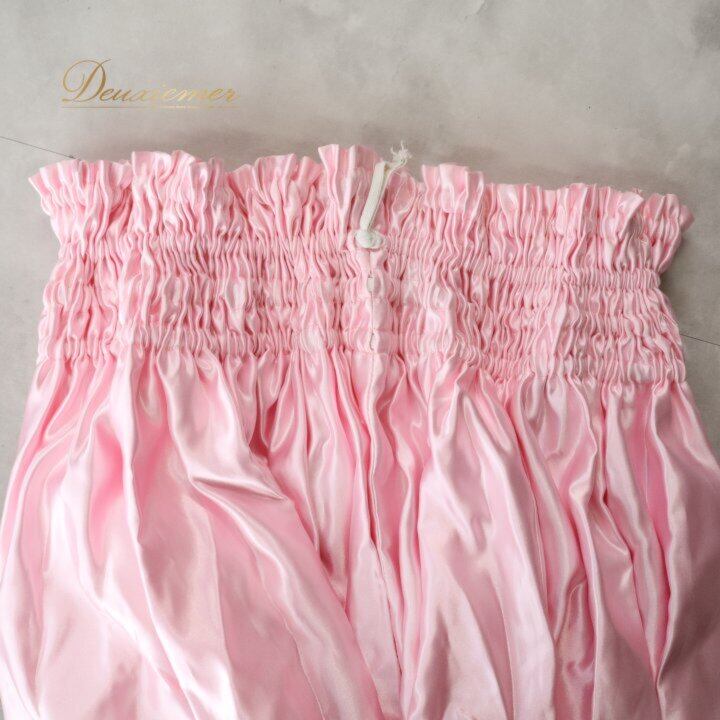 #ピンク #無地 #シンプル #光沢 #サテン風 #かわいい #レディース #ウエストゴム #4本ゴム #楽ちん #伸縮性 #薄手生地 #きれいめ #カジュアル #春コーデ #夏コーデ #オフィスカジュアル #ルームウェア #ギャザー #ENUTSU