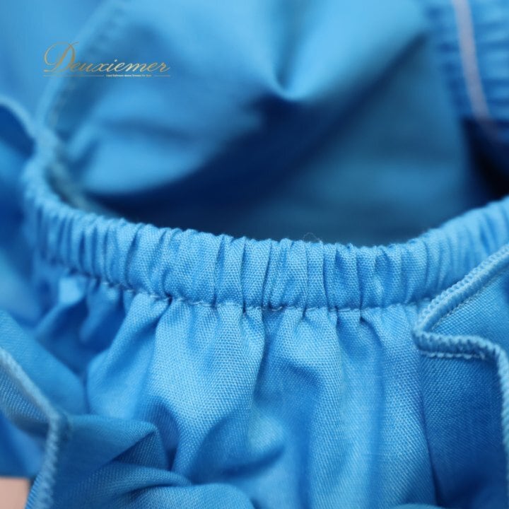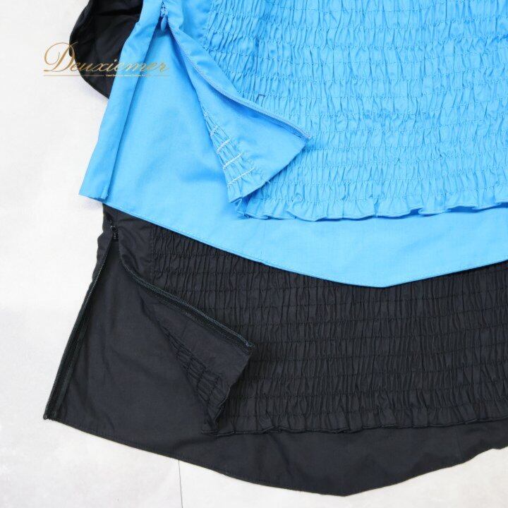 水色:数か所汚れ有り。肩、袖、背面のゴムに伸び有り。肩と袖のゴムに色褪せ、汚れ有り。