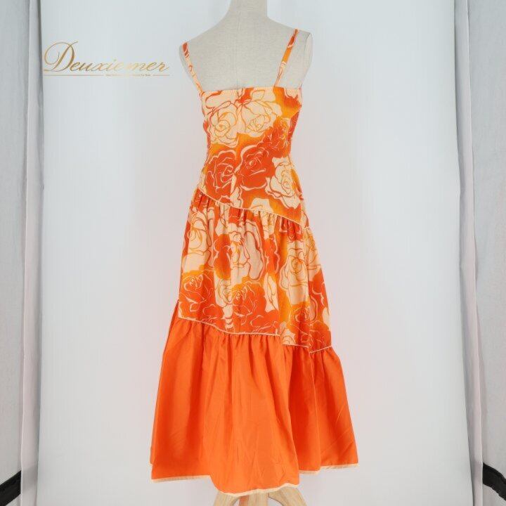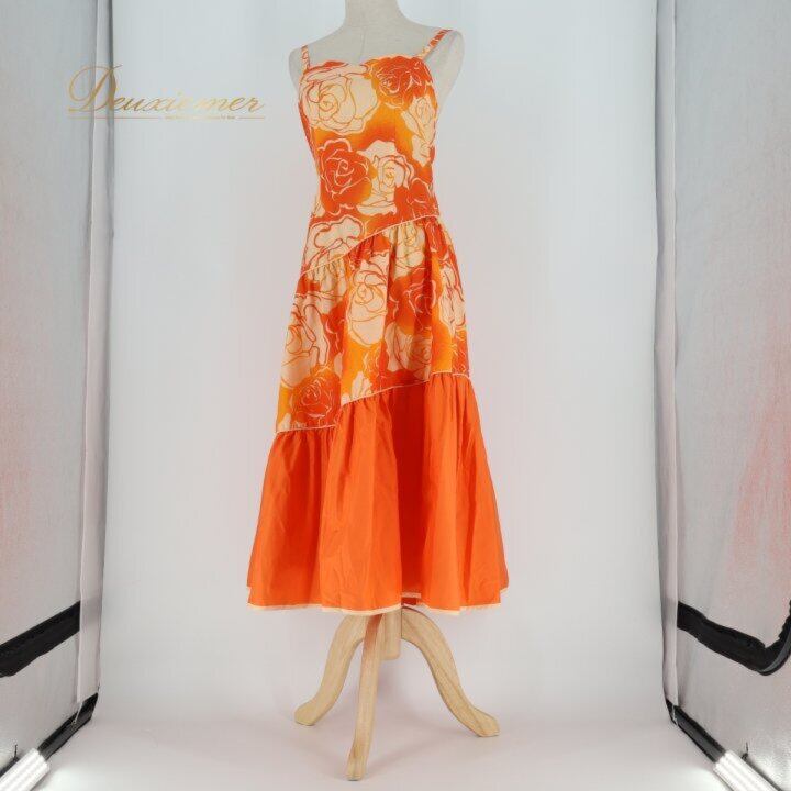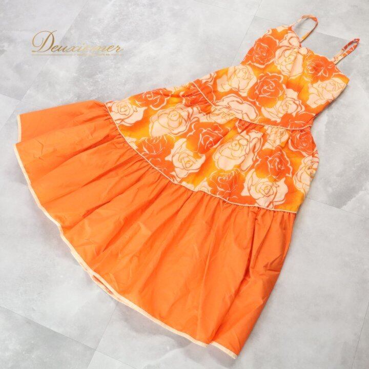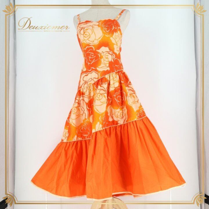 フラダンス 衣装 ワンピース ドレス オレンジ系 アロハスタンダード ALOHASTANDARDS 日本製 バラ柄 ロケラニ柄 キャミソールドレス フレアスカート ダンス衣装 ハワイアンダンス レディース ホワイト系 オレンジ系 橙 華やか 鮮やか かわいい おしゃれ キャミソール ワンピ ロケラニ ローズ バラ柄 フレア Aライン ギャザー フラワープリント ハワイアンテイスト ボリュームスカート ひらひら ふんわり キュート エレガント かわいい 大人女子 ダンス発表会 フラレッスン フラショー