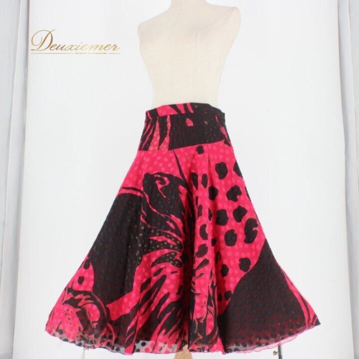 社交ダンス 衣装 スタンダード スカート レッスンウェア レディース ブラック系 ピンク系 DANCE FASHION WORLD 練習着 赤 ダンスファッションワールド 日本製 スタンダードドレス スカート単品 フレアスカート 総柄 ドット柄