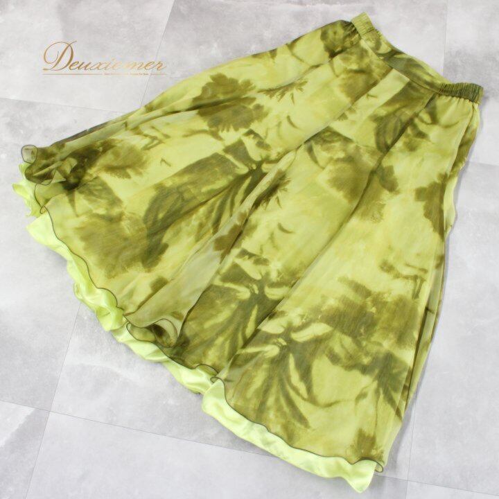 #グリーン #ライトグリーン #二重スカート #フレアスカート #広がるシルエット #スカートコーデ #春コーデ #夏コーデ #秋コーデ #きれいめ #上品スタイル #大人かわいい #ウエスト調整 #ファスナー仕様 #ストレッチ性 #ポリエステル #Lサイズ #レディースファッション #ENUTSU
