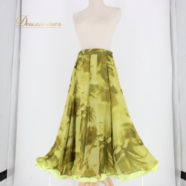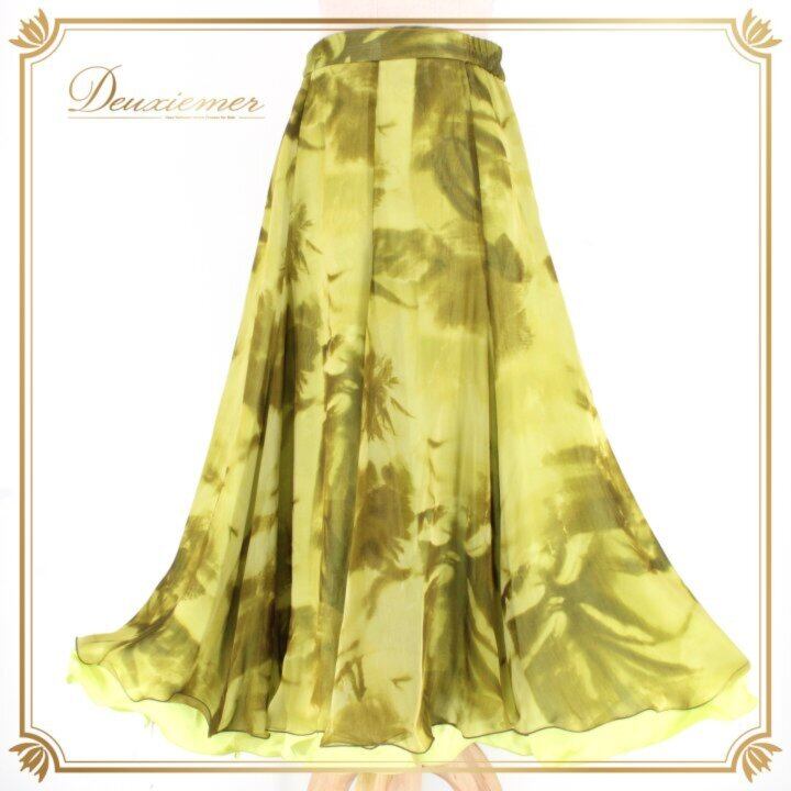 社交ダンス 衣装 スタンダード スカート レッスンウェア レディース グリーン系 緑 黄緑 練習着 フォーマル ステージ衣装 かわいい 二重スカート フレアスカート ライトグリーン系 くすみグリーン系 光沢 ポリエステル