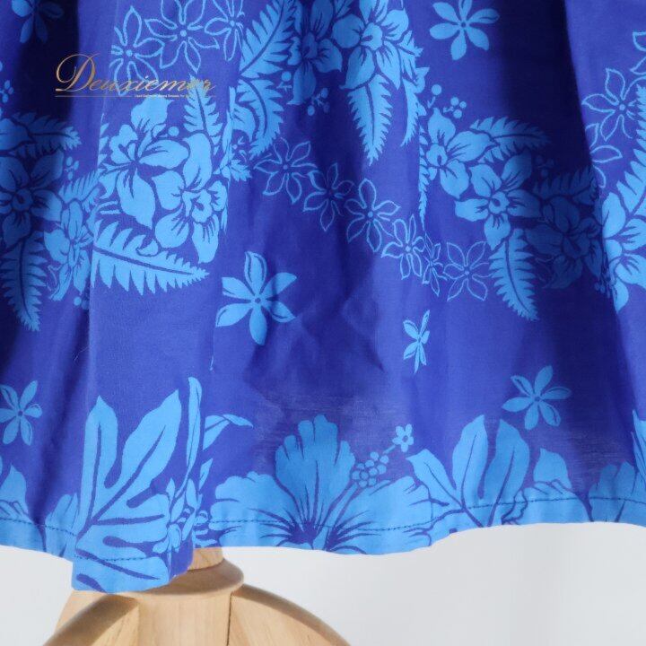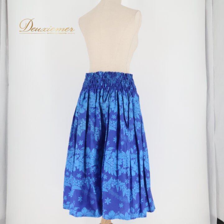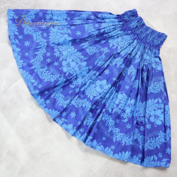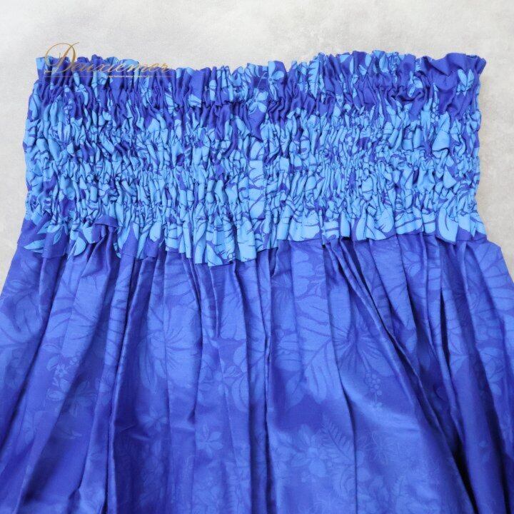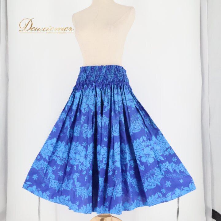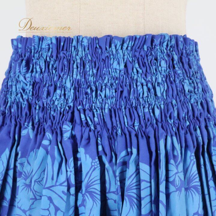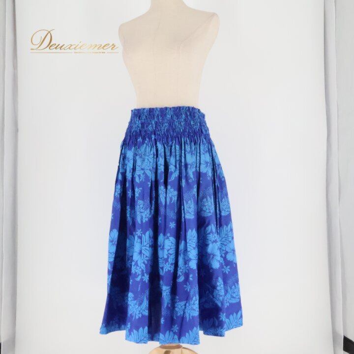 フラダンス 衣装 パウスカート ブルー系 ワントーン ハイビスカス柄 ティアレ柄 シングル シンプル かわいい 華やか 鮮やか 明るい 爽やか 青 ダンス衣装 ハワイアンダンス レディース ハワイアン アロハ ハワイアンプリント フラ ダンス レッスン 練習