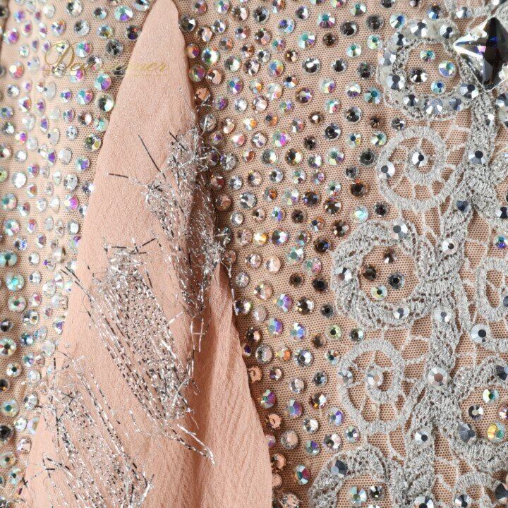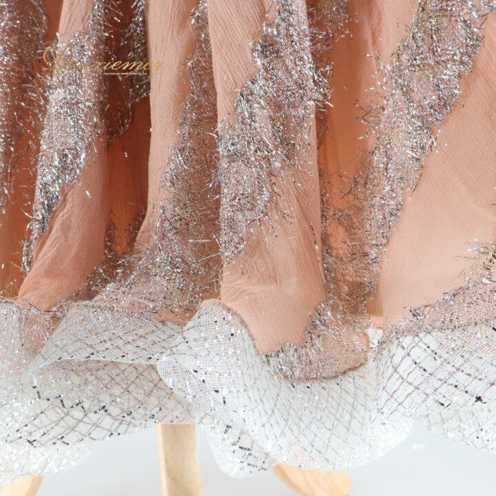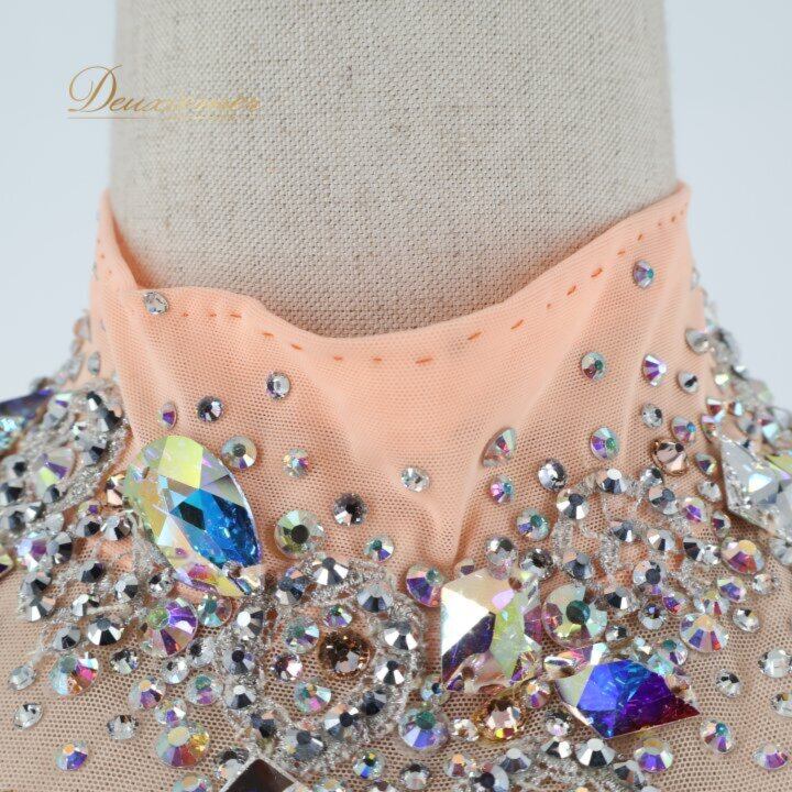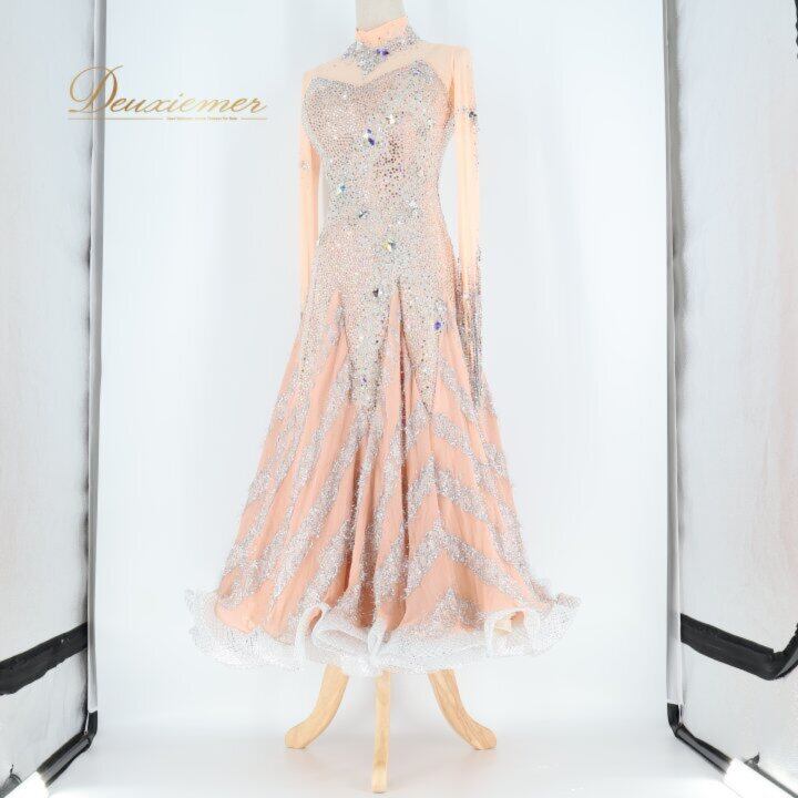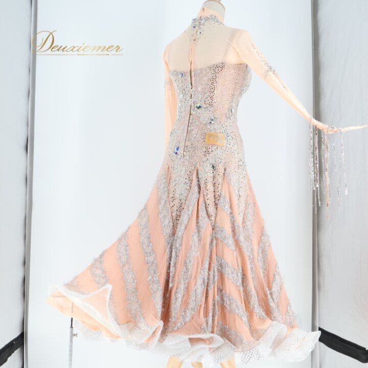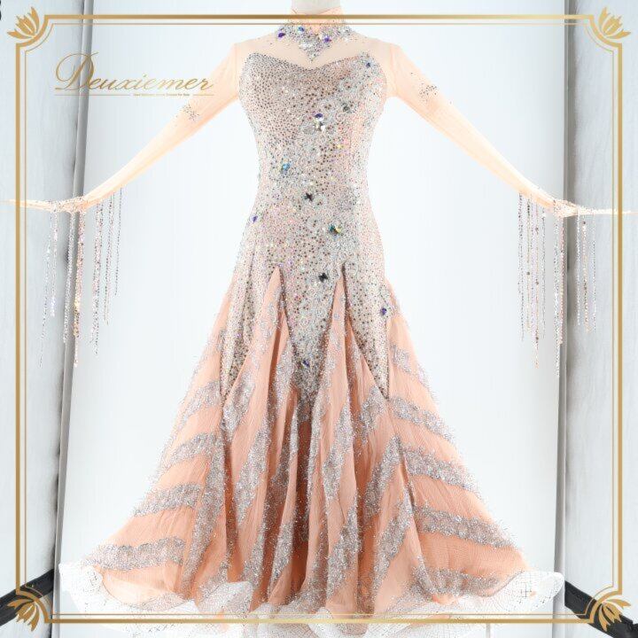 社交ダンス 衣装 gentil Chisaki uga ジャンティ 宇賀千咲 スタンダードドレスワンピース ドレス ピンク系 オレンジ系 ゴールド系 ピンク サーモン くすみ デモ 競技 ダンス パーティ 発表会 フリル 豪華 高級感 上品 大人可愛い キラキラビジュー 競技会 デモンストレーション 舞台衣装 発表会ドレス ダンスドレス