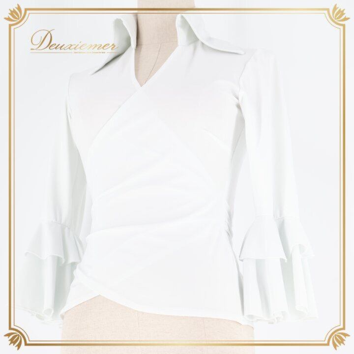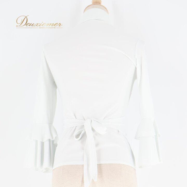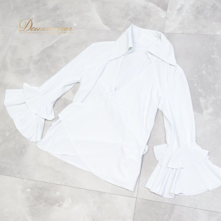 フラメンコ衣装 トップス ブラウス ホワイト系 白 無地 伸縮 ストレッチ リボン 襟付き レッスン 練習着 ダンス パーティ 発表会 フラメンコ 白系 レディース レッスン用 練習用 ダンス衣装 衣装 コスチューム 伸びる 舞台用 ストレッチ素材 薄手