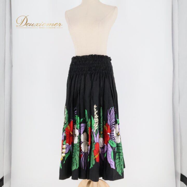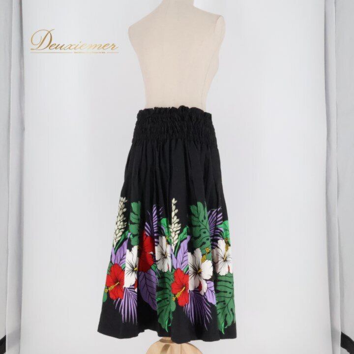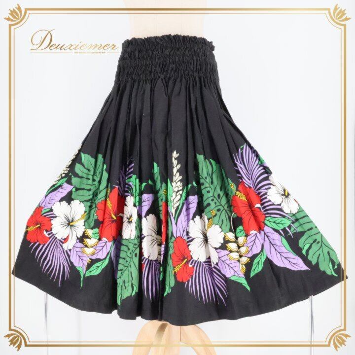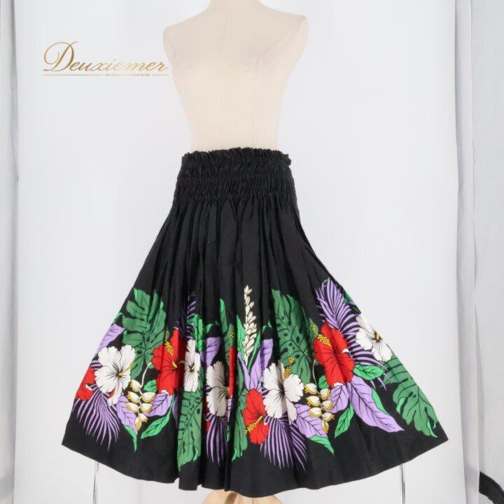フラダンス 衣装 パウスカート ブラック系 ハイビスカス柄 モンステラ柄 シングル シンプル 華やか 鮮やか エレガント 黒 白 赤 紫 緑 ダンス衣装 ハワイアンダンス レディース ハワイアン アロハ ハワイアンプリント フラ ダンス レッスン 練習