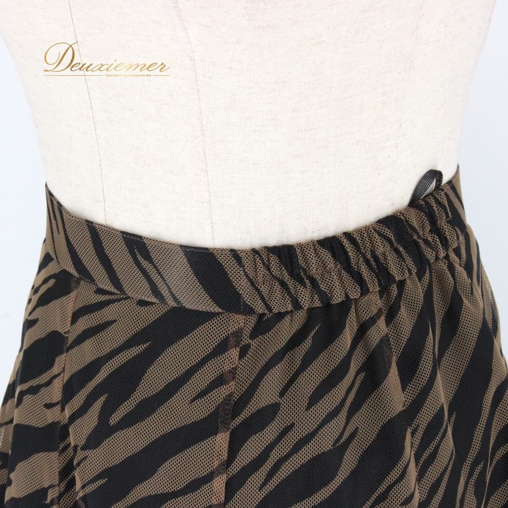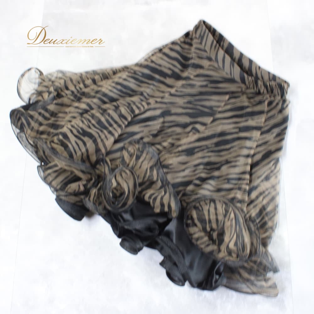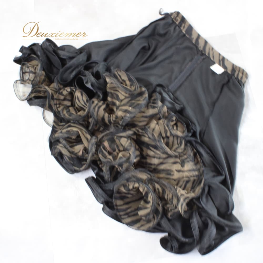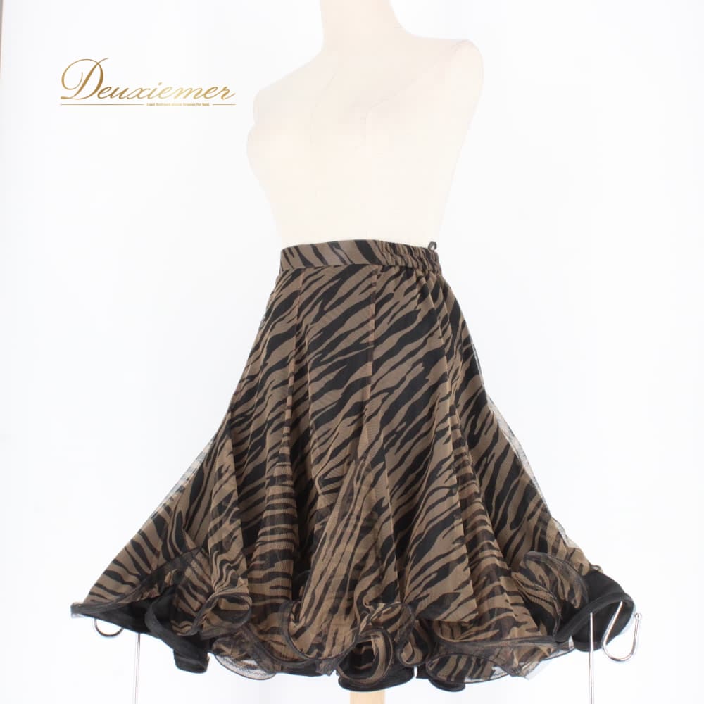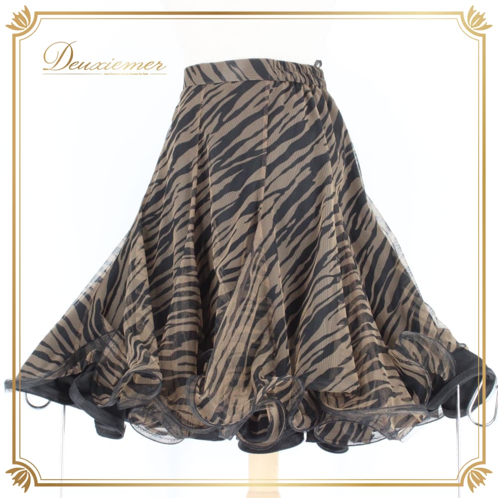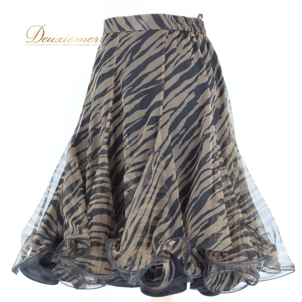 社交ダンス 衣装 スタンダード スカート レッスンウェア レディース DANCE FASHION WORLD ブラック系 ブラウン系 黒 茶 レース 練習着 フレアスカート ダンス衣装 スタンダード用 広がる ふんわり 切替なし シック ゼブラ柄 動物柄 ブラック ブラウン スタイリッシュ 大人 上品 フェミニン 女性用 ポリエステル ファスナー付き 伸縮 あり ウエスト調整 なし ダンス フォーマル 競技用 9号 社交ダンスレッスン ステージ用 練習 女優感 エレガント ダンスファッションワールド