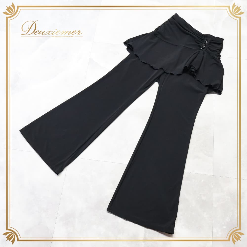 社交ダンス 衣装 ボトムス ブラック系 チャコット Chacott 黒 ズボン パンツ 無地 シンプル 練習 レッスン 伸縮 ストレッチ 日本製 装飾 上品 かわいい ダンス衣装 イベント おしゃれ 柔らかい生地 オールブラック