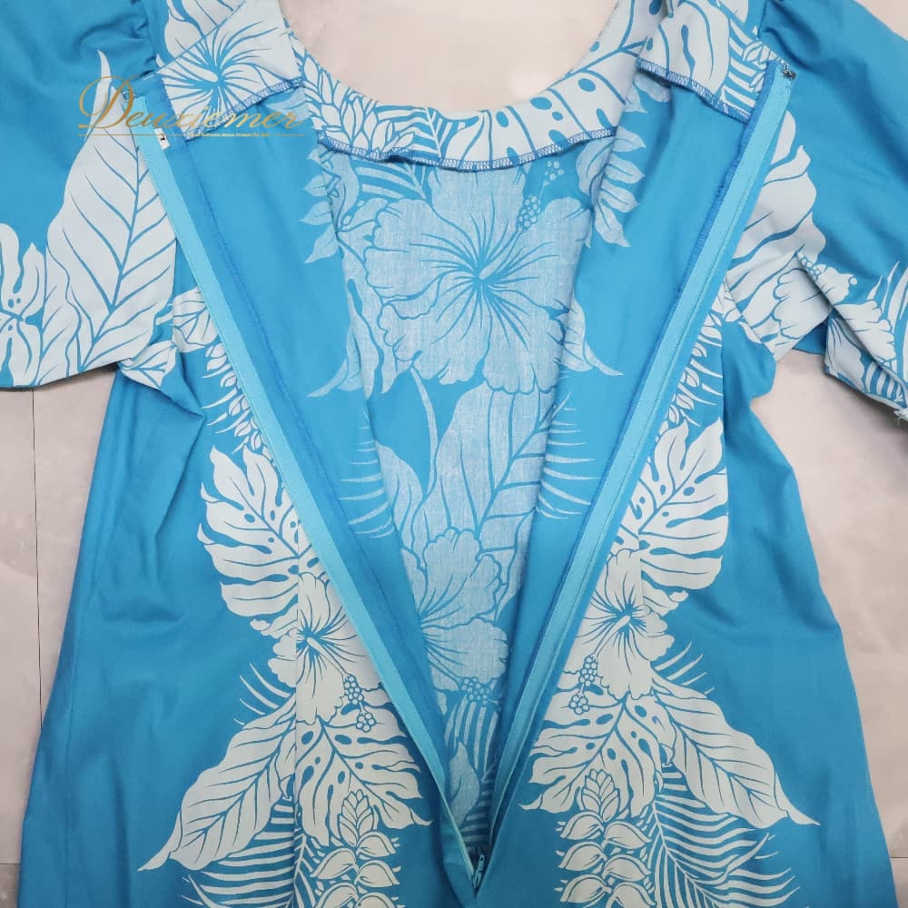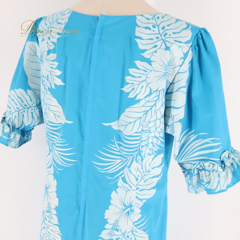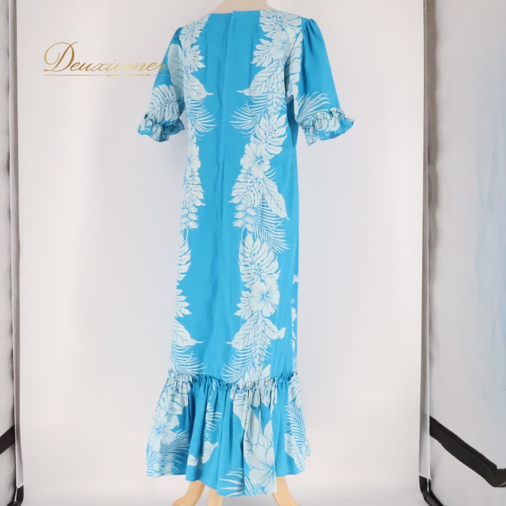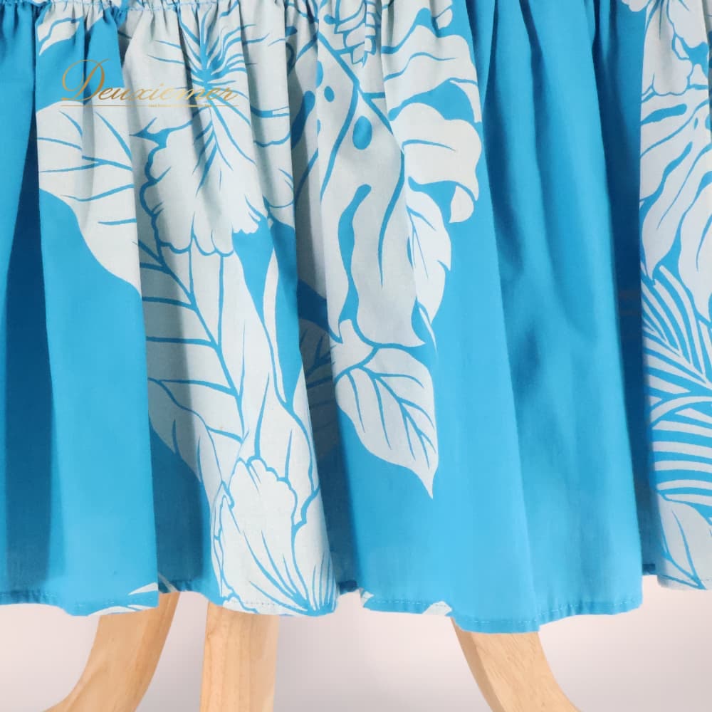 フラダンス 衣装 ワンピース ドレス ブルー系 ホワイト系 ハイビスカス柄 モンステラ柄 フリル かわいい 華やか 鮮やか 明るい 爽やか 水色 白 ダンス衣装 ハワイアンダンス レディース ハワイアン アロハ ハワイアンプリント フラ ダンス レッスン 練習