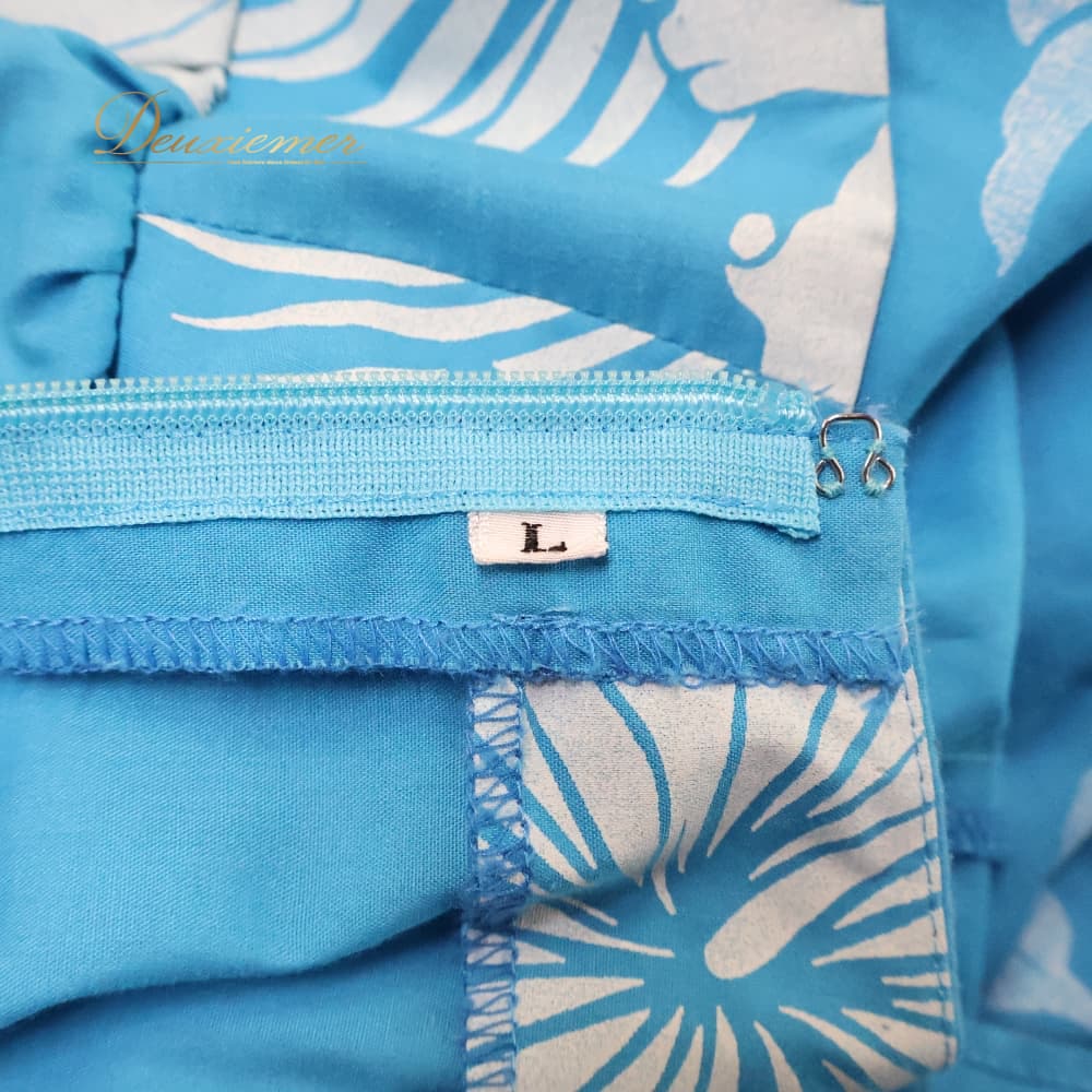 #ワンピース #Lサイズ #ブルー #ホワイト #爽やか #大柄プリント #花柄 #パターン #デザインワンピ #背面ファスナー #ホック仕様 #きれいめ #カジュアル #通勤コーデ #お出かけコーデ #春コーデ #夏コーデ #レディースファッション #ENUTSU