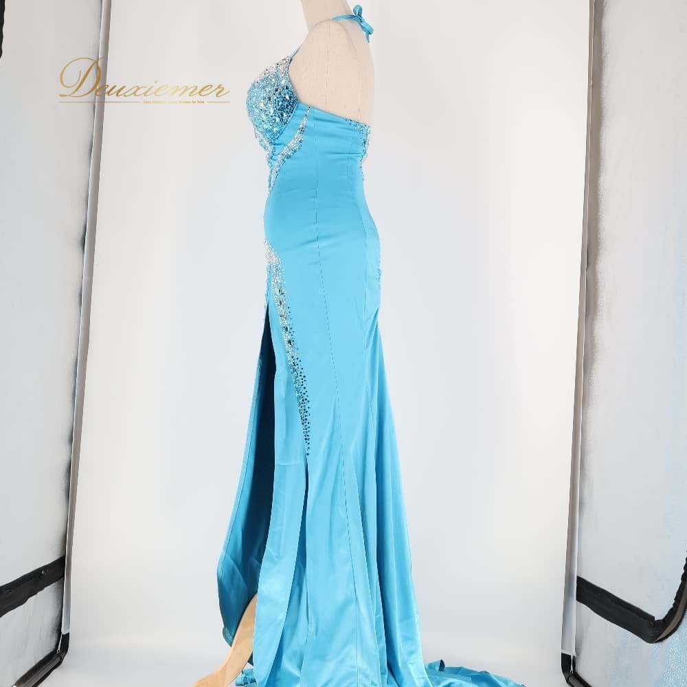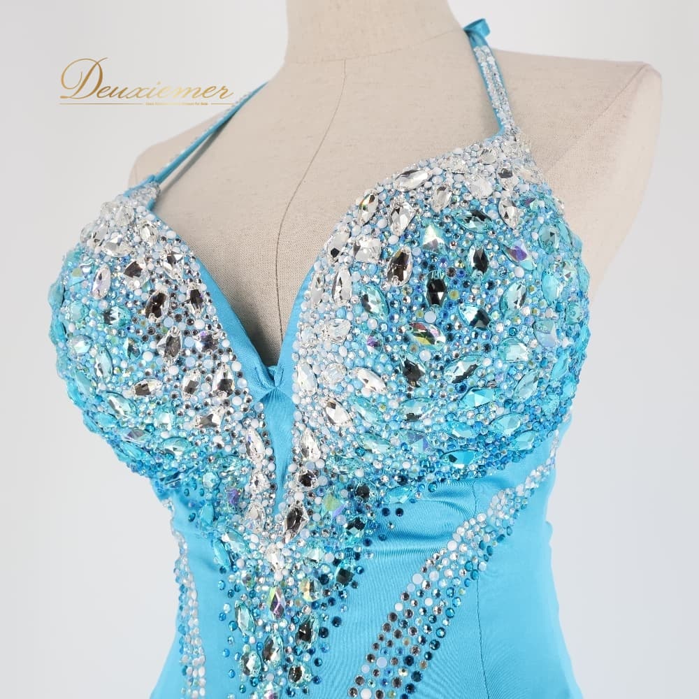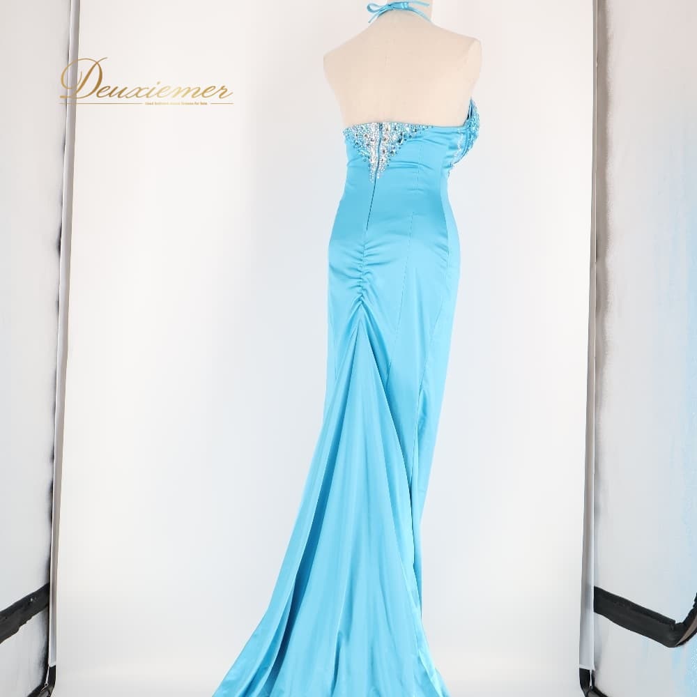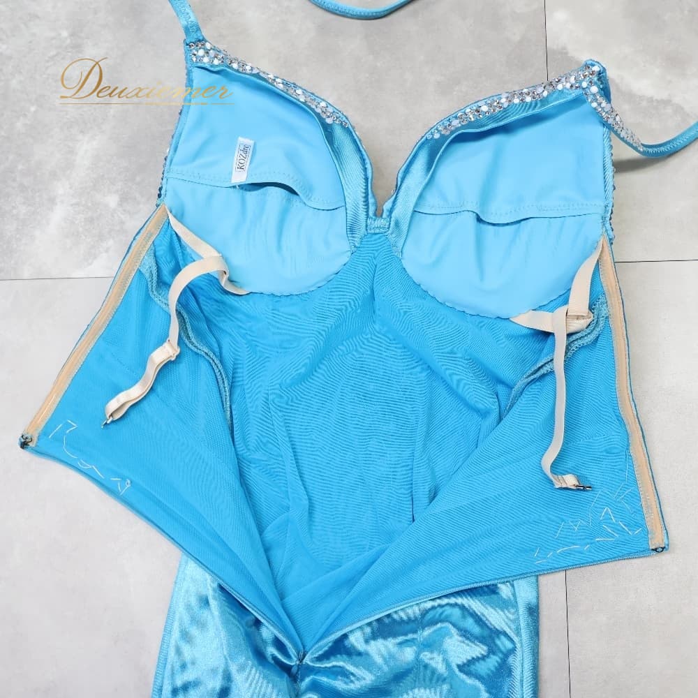 ボディコン コズドレ KOZdre KOZYA ドレス ワンピース ブルー系 シルバー系 水色 ランウェイモデル パーティ 発表会 練習 レッスン 大人可愛い スリット ロング丈 きれいめ フォーマル レッスンウェア シルバー装飾 光沢