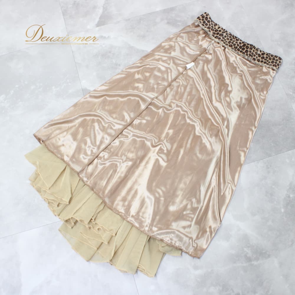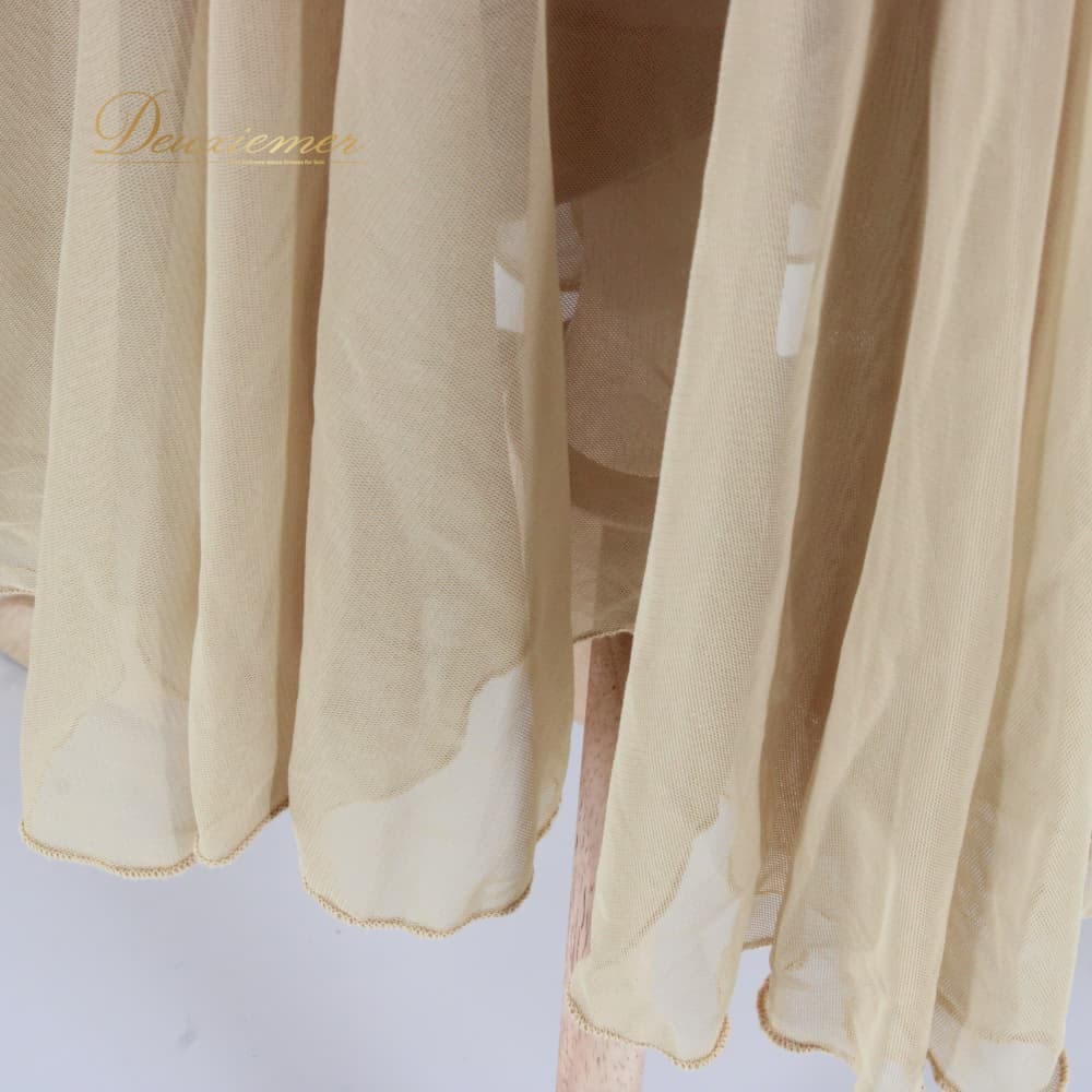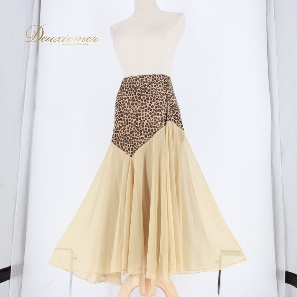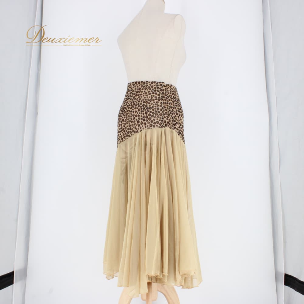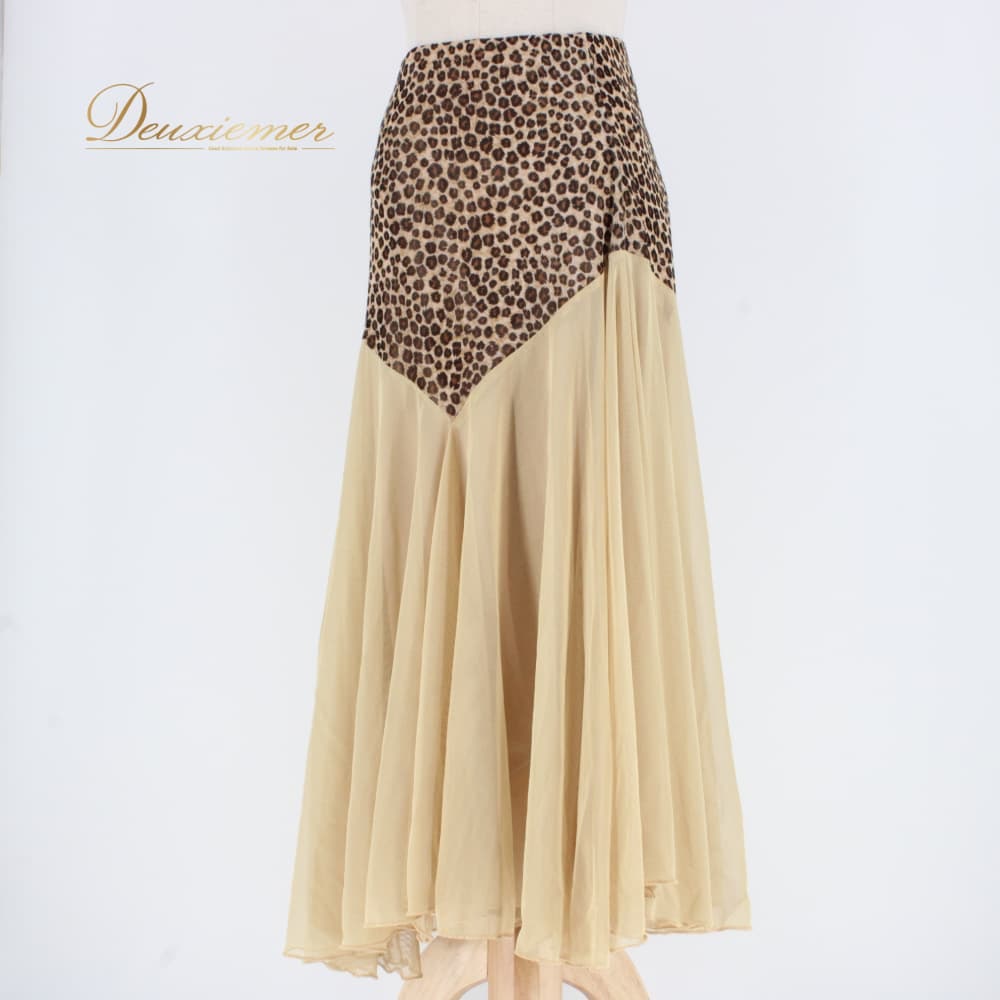 社交ダンス 衣装 スタンダード スカート レッスンウェア レディース ベージュ系 ブラウン系 レース ヒョウ柄 練習着 ステージ衣装 上品 ダンス衣装 レオパード シック エレガント 大人可愛い 舞台衣装 ポリエステル フレアスカート アシンメトリー風 きれいめ 伸縮性 ポケットなし レース風デザイン 丈長め ミドル丈 83cm前後 ゴムウエスト ウエストゴム フィット感 たっぷりフレア