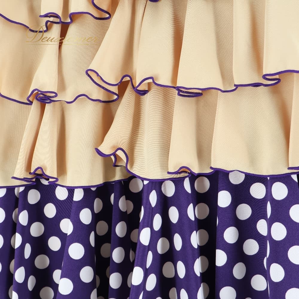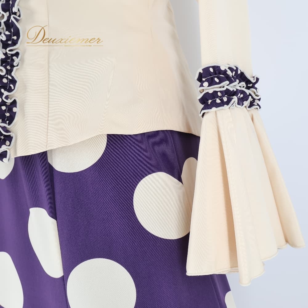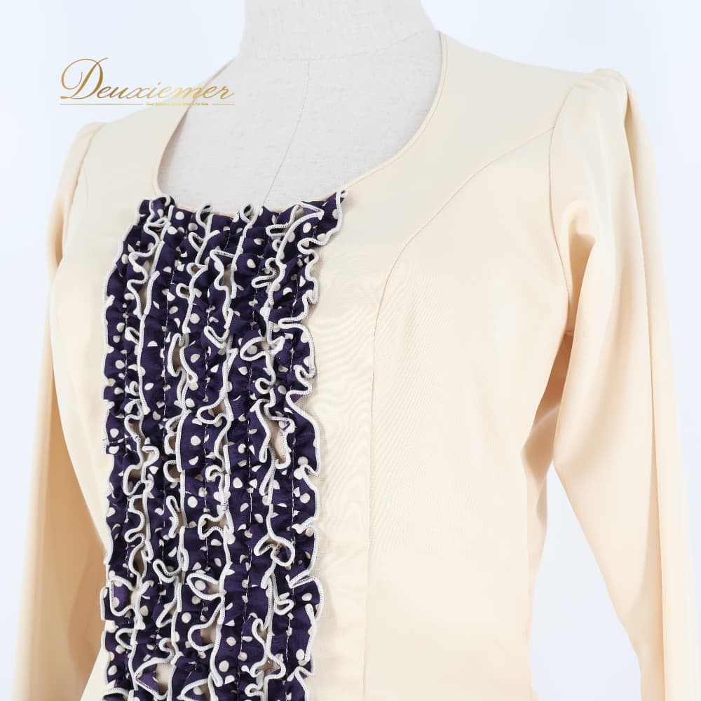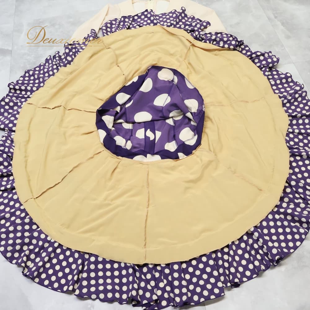 フラメンコ 衣装 エルモサイベリア HERMOSAIBERIA トップス ブラウス ファルダ スカート ツーピース セットアップ ベージュ系 パープル系 ゴールド系 クリーム 紫 水玉 ドット フリル ダンス パーティ 発表会 ダンス衣装 ステージ衣装 舞台衣装 ポップ かわいい レトロ