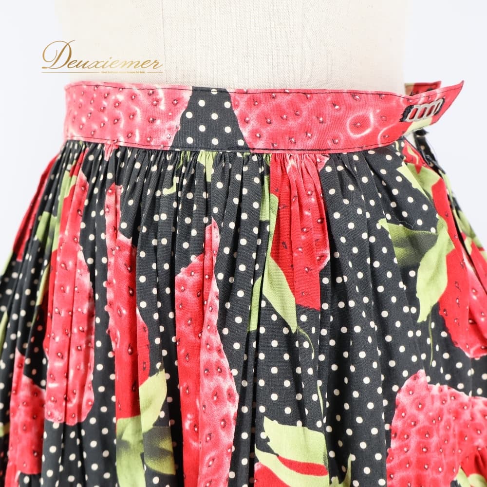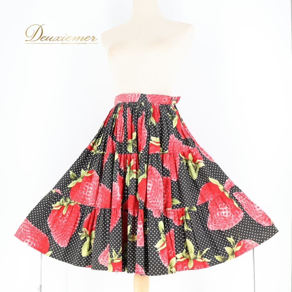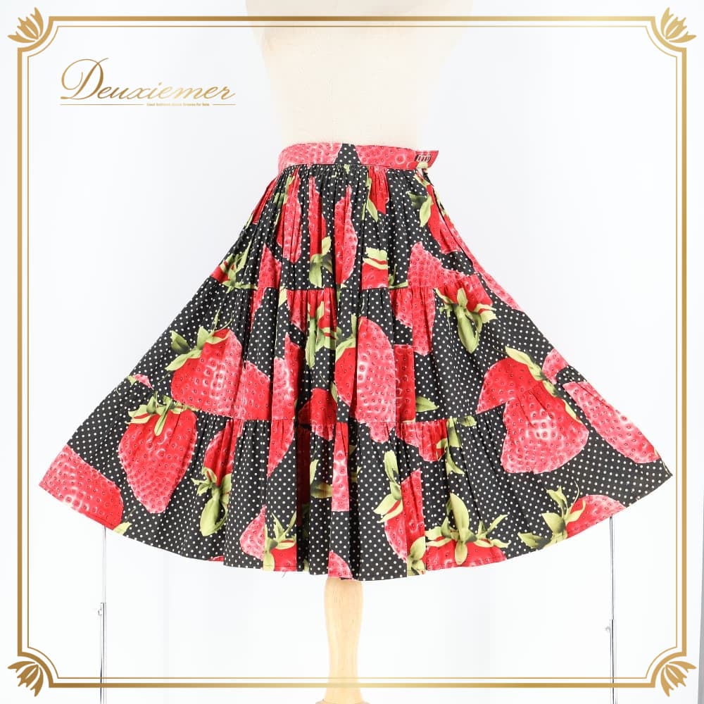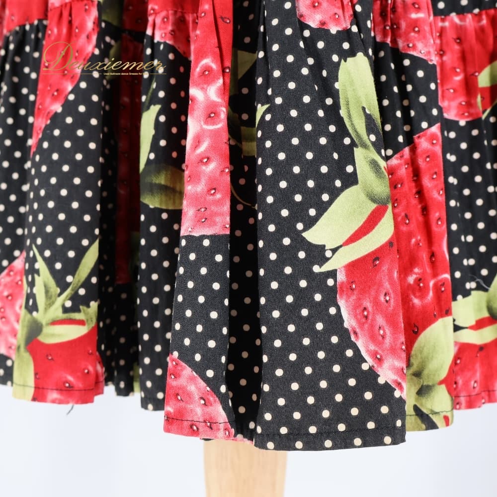 フォークダンス 衣装 スカート ブラック系 いちご 苺 チロリアン チロルスカート カントリー 果物 黒 赤 白 緑 水玉 ドット柄 華やか かわいい ダンス衣装 練習 レッスン イベント イチゴ レッド系 グリーン系 ホワイト系