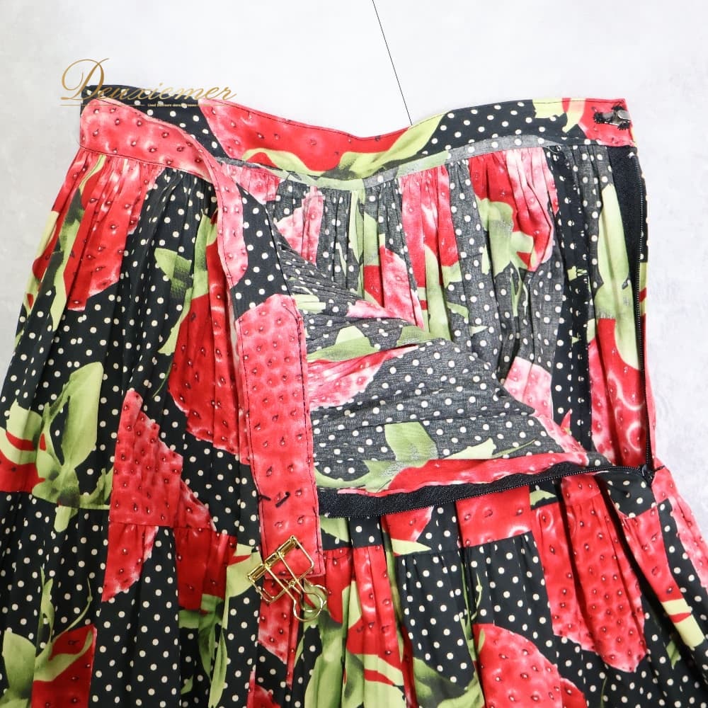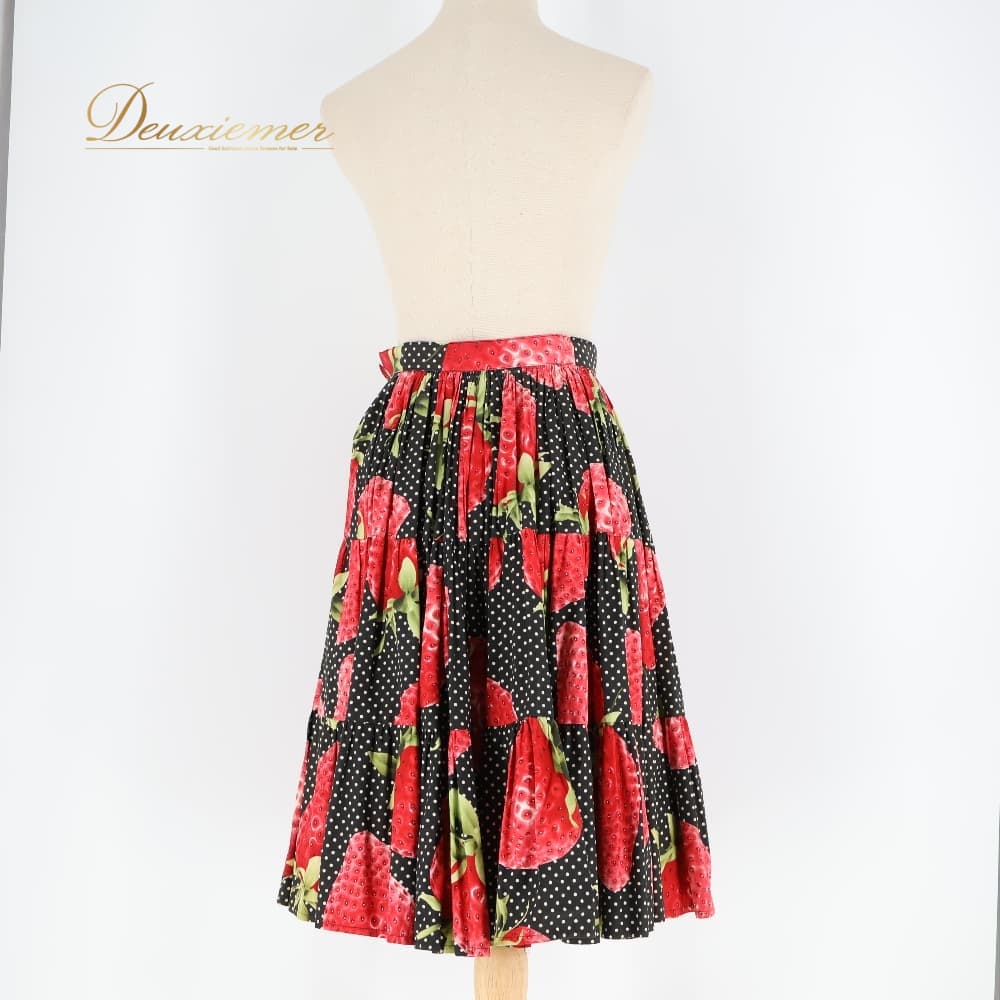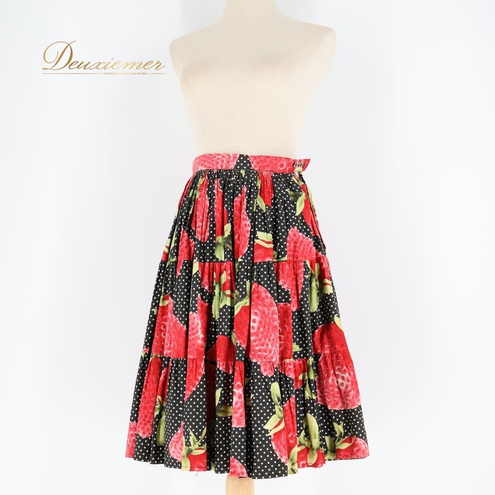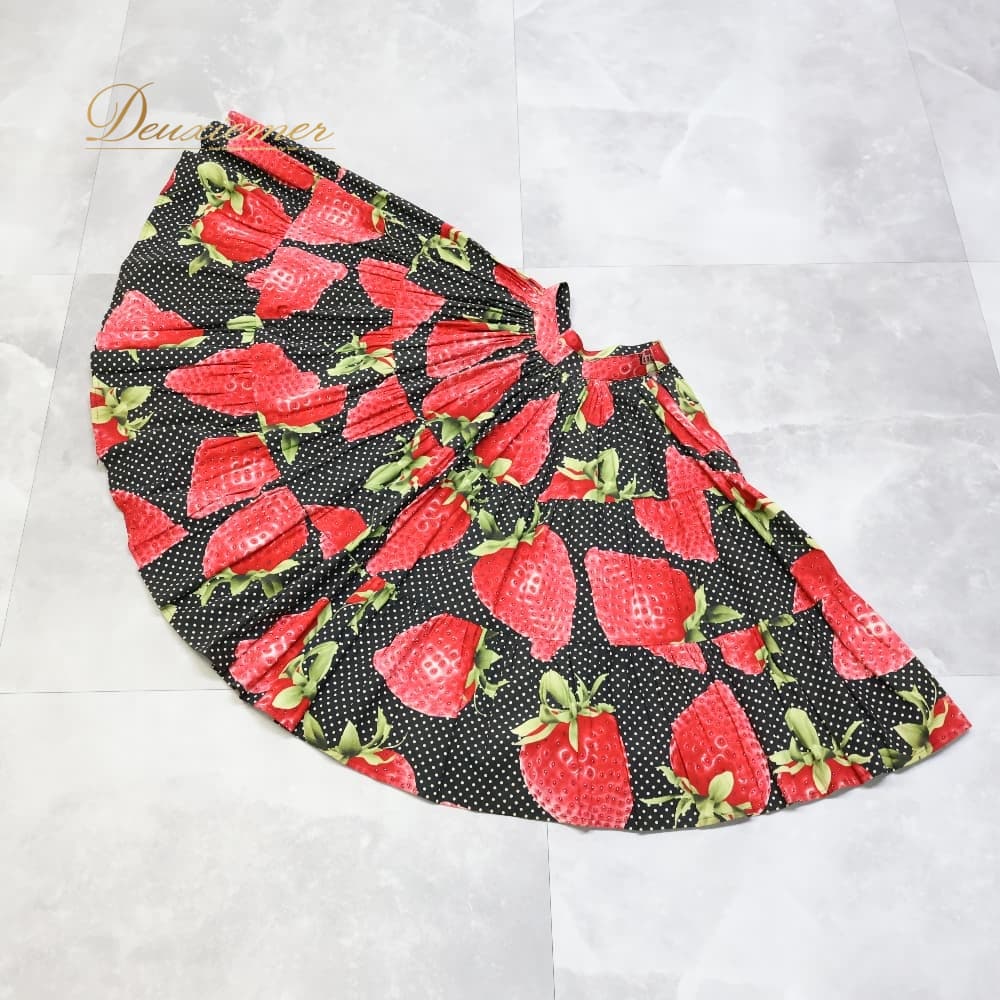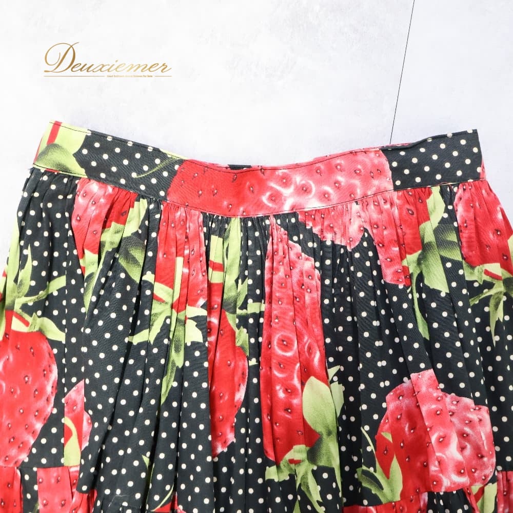 フォークダンス 衣装 スカート ブラック系 いちご 苺 チロリアン チロルスカート カントリー 果物 黒 赤 白 緑 水玉 ドット柄 華やか かわいい ダンス衣装 練習 レッスン イベント イチゴ レッド系 グリーン系 ホワイト系