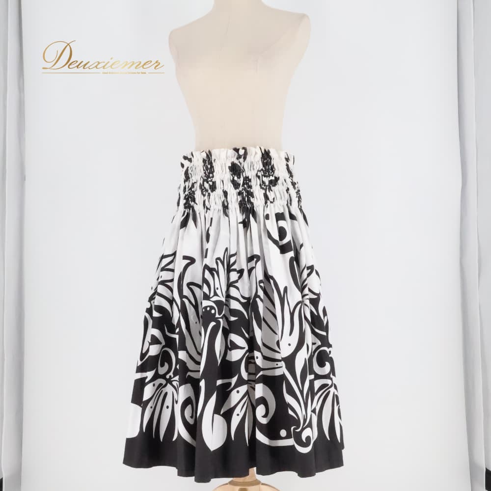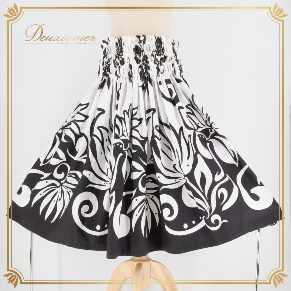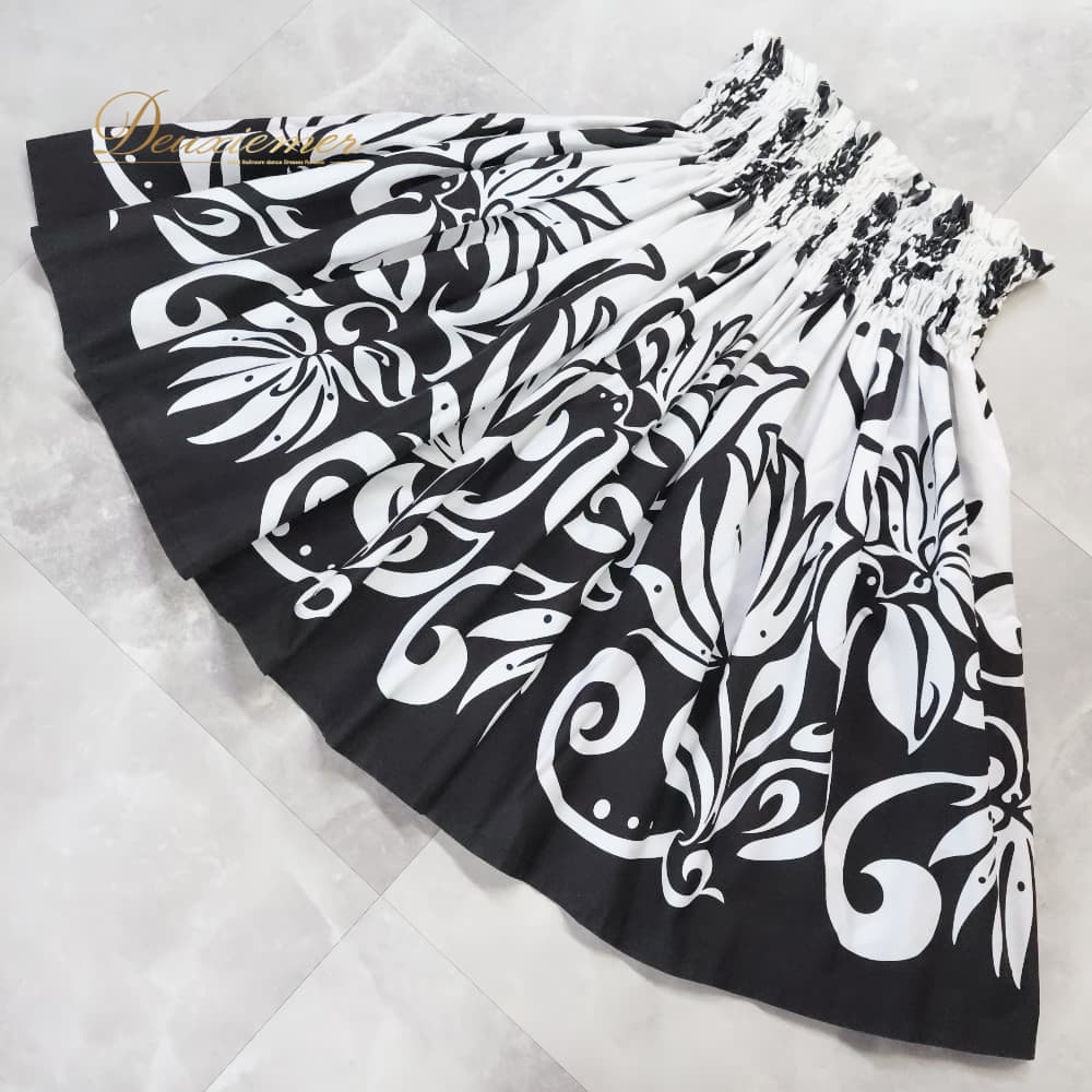 フラダンス 衣装 パウスカート ブラック系 ホワイト系 モノトーン シングル シンプル きれい 上品 大人っぽい 華やか 鮮やか かわいい 白 黒 ダンス衣装 ハワイアンダンス レディース ハワイアン アロハ ハワイアンプリント フラ ダンス レッスン 練習