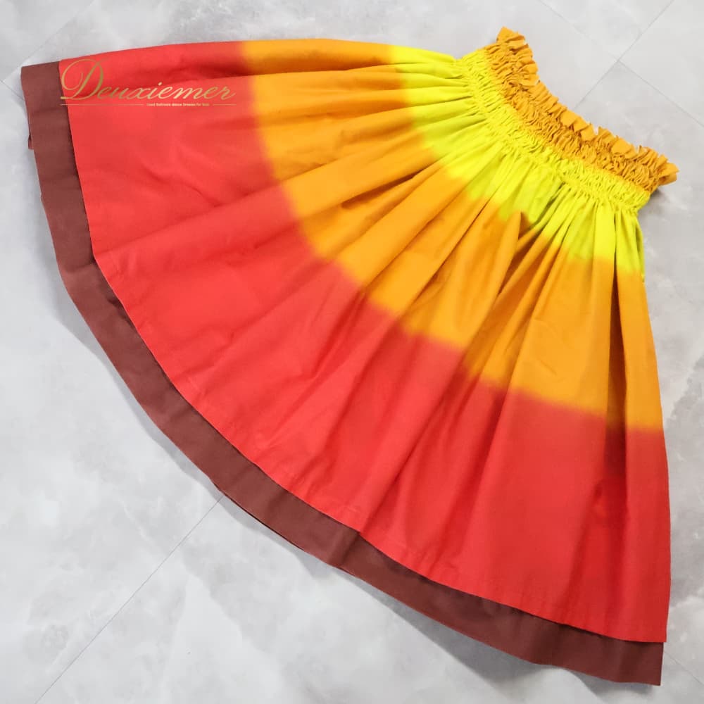 フラダンス 衣装 パウスカート イエロー系 レッド系 リバーシブル プルメリア柄 無地 かわいい 華やか 鮮やか 明るい 黄 茶 白 緑 赤 橙 ダンス衣装 ハワイアンダンス レディース ハワイアン アロハ ハワイアンプリント フラ ダンス レッスン 練習