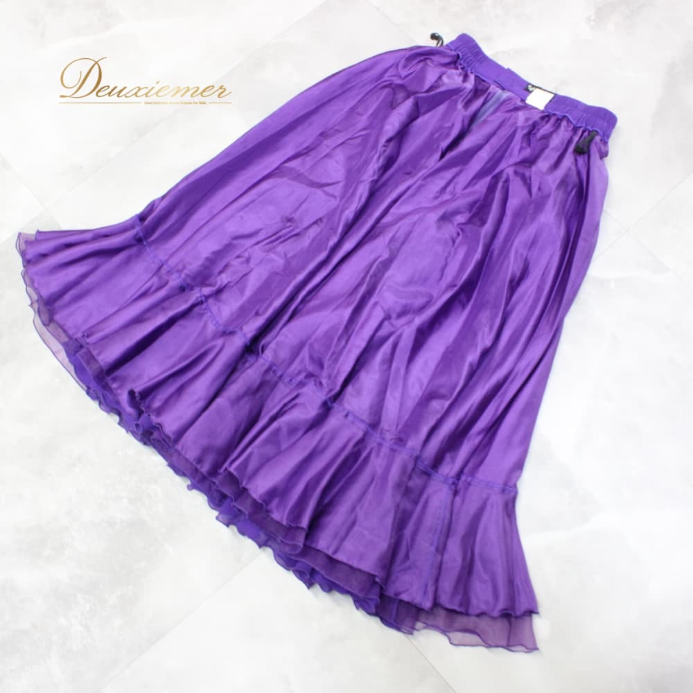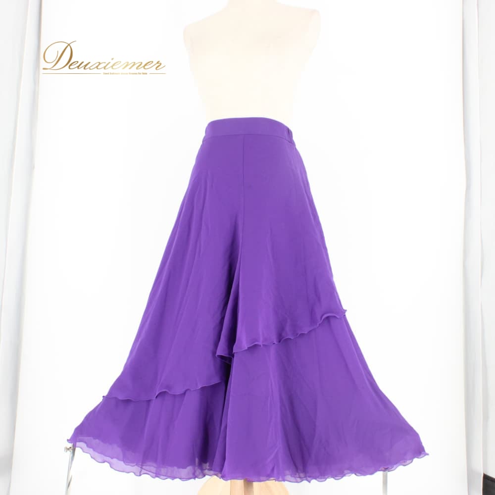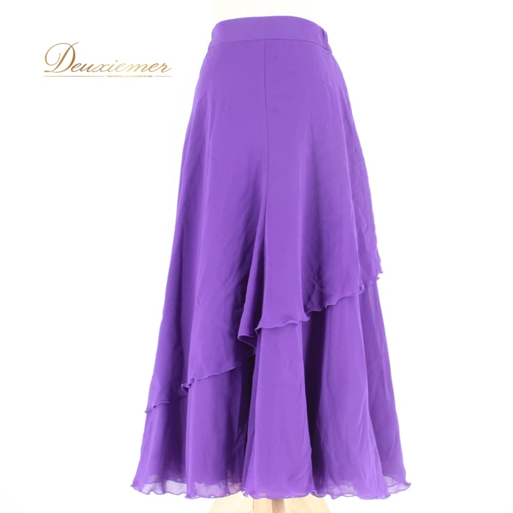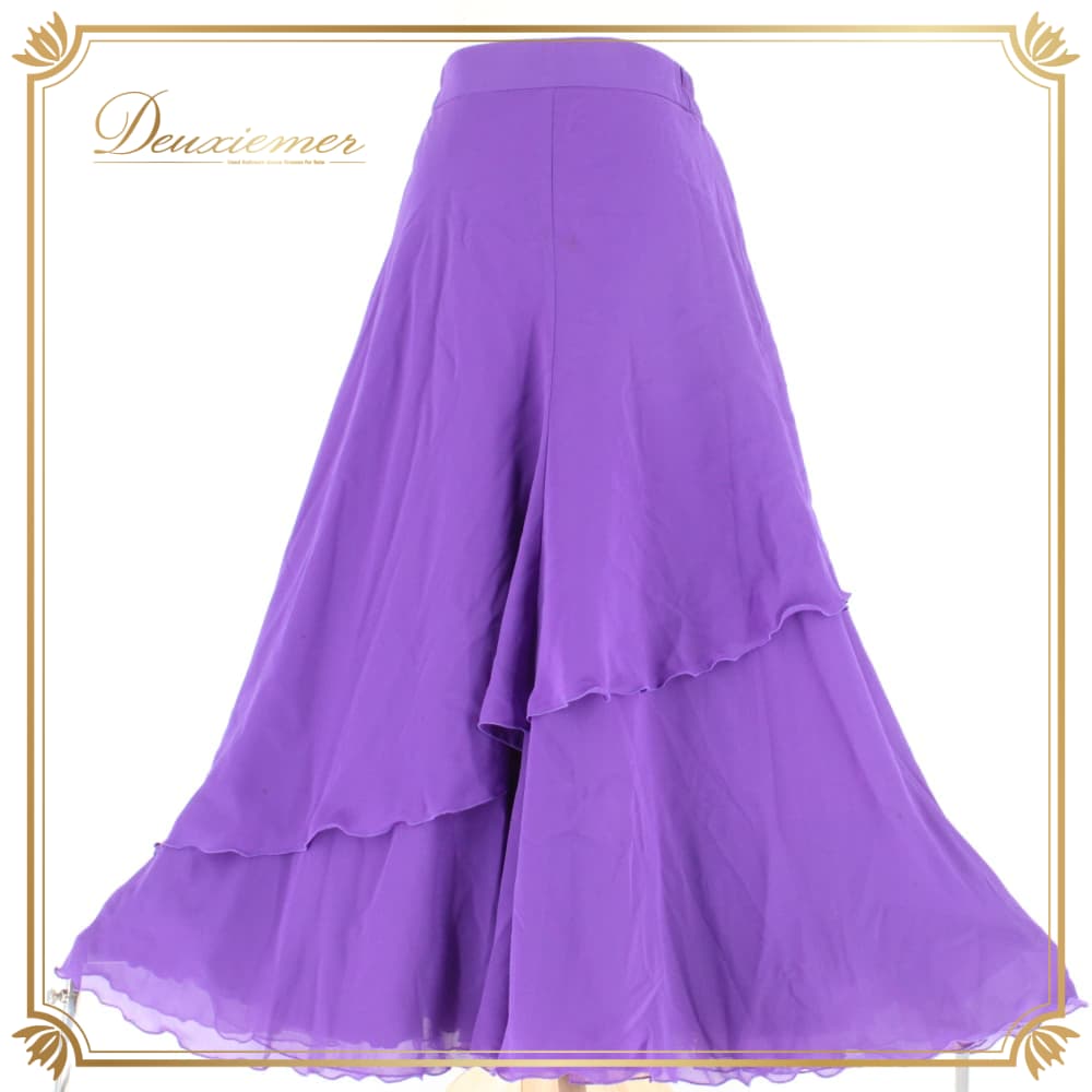 社交ダンス 衣装 スタンダード スカート レッスンウェア レディース Papillon 紫 パープル系 無地 シンプル 練習着 フォーマル 上品 バイオレット系 フレアスカート ラテン スタンダード兼用 ドレス ステージ衣装 おしゃれ 大人 きれいめ ふんわり 透け感風 羽織風 ペチコート風 ボリューム感 すそ広がり 後ろファスナー Mサイズ相当 パピヨン 日本製 ポリエステル 生地 ライトウェイト 舞台衣装 ダンス衣装 練習用 上質 伸縮性 きらきらなし
