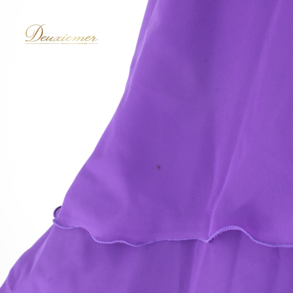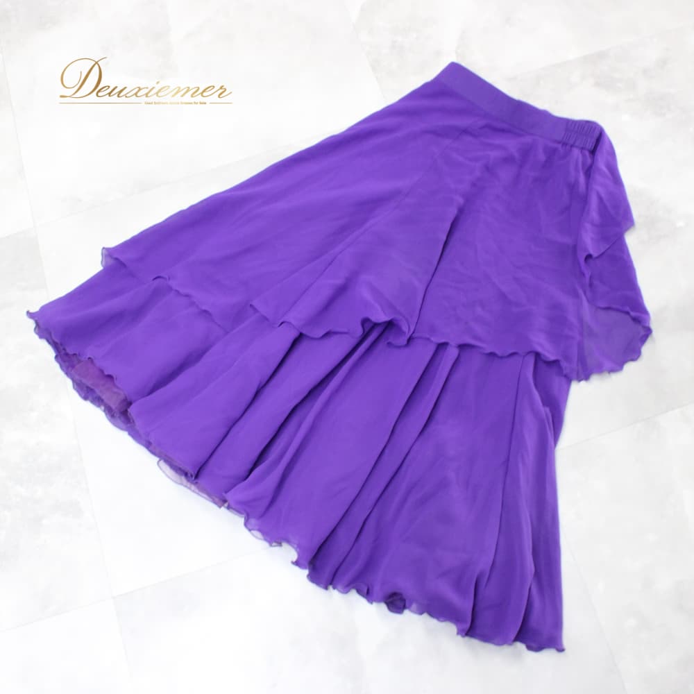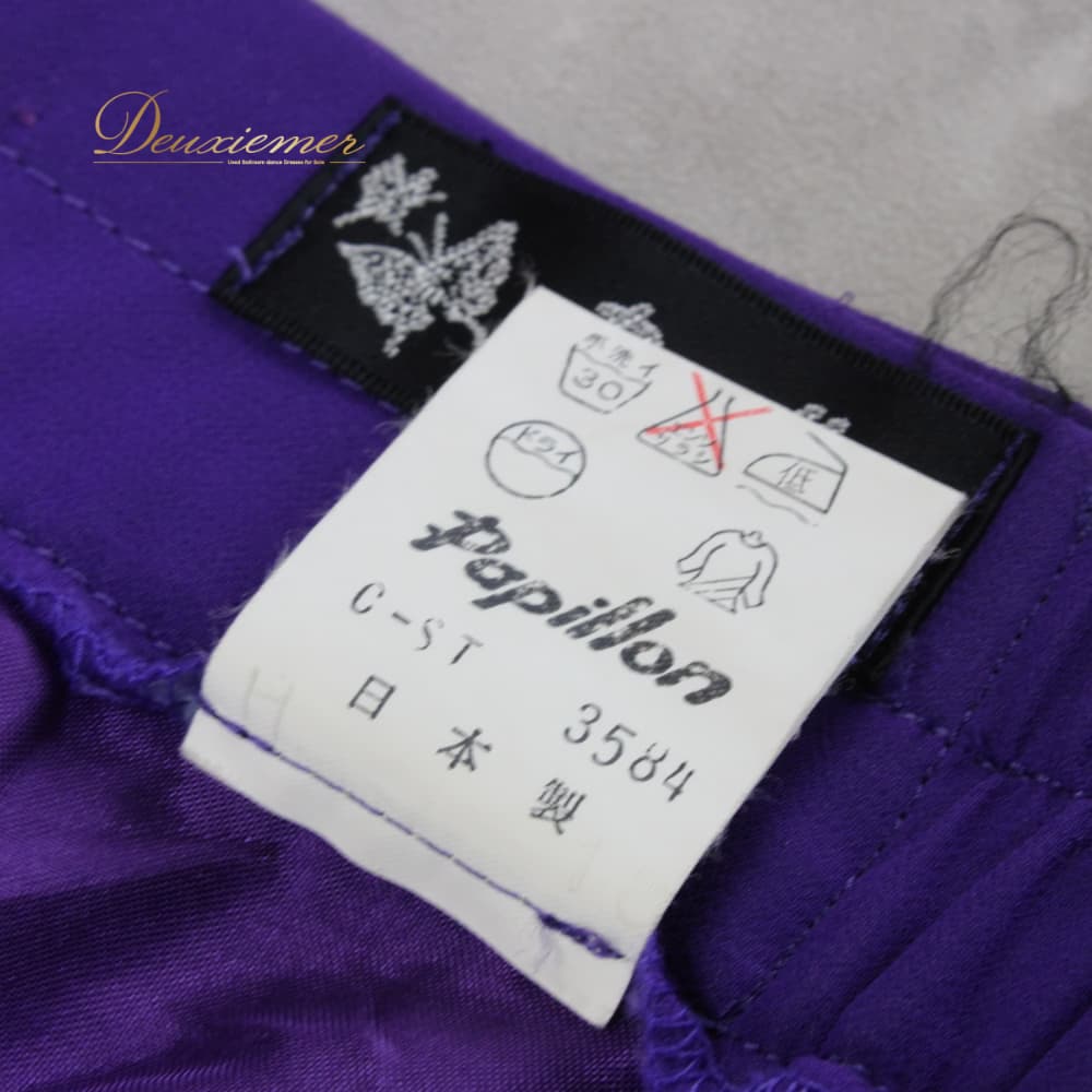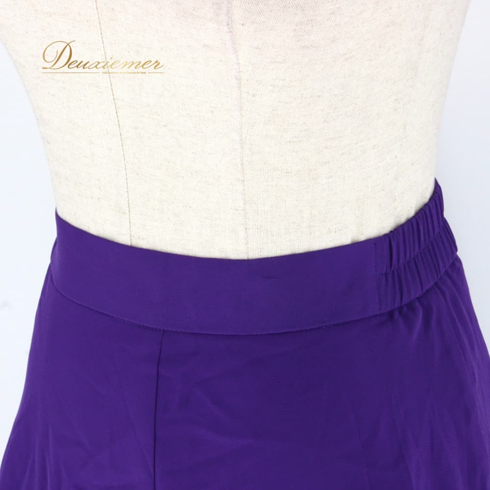 社交ダンス 衣装 スタンダード スカート レッスンウェア レディース Papillon 紫 パープル系 無地 シンプル 練習着 フォーマル 上品 バイオレット系 フレアスカート ラテン スタンダード兼用 ドレス ステージ衣装 おしゃれ 大人 きれいめ ふんわり 透け感風 羽織風 ペチコート風 ボリューム感 すそ広がり 後ろファスナー Mサイズ相当 パピヨン 日本製 ポリエステル 生地 ライトウェイト 舞台衣装 ダンス衣装 練習用 上質 伸縮性 きらきらなし
